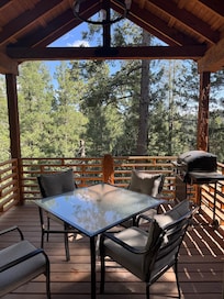 Adorable, brand new cabin with 2 bedrooms, 1 bath. Sleeps 4. Deck on back is like being in a treehouse. Lots of wild life roaming. Located in the Village & close to hiking trails, Cloudcroft Brewery & shopping, all within walking distance.