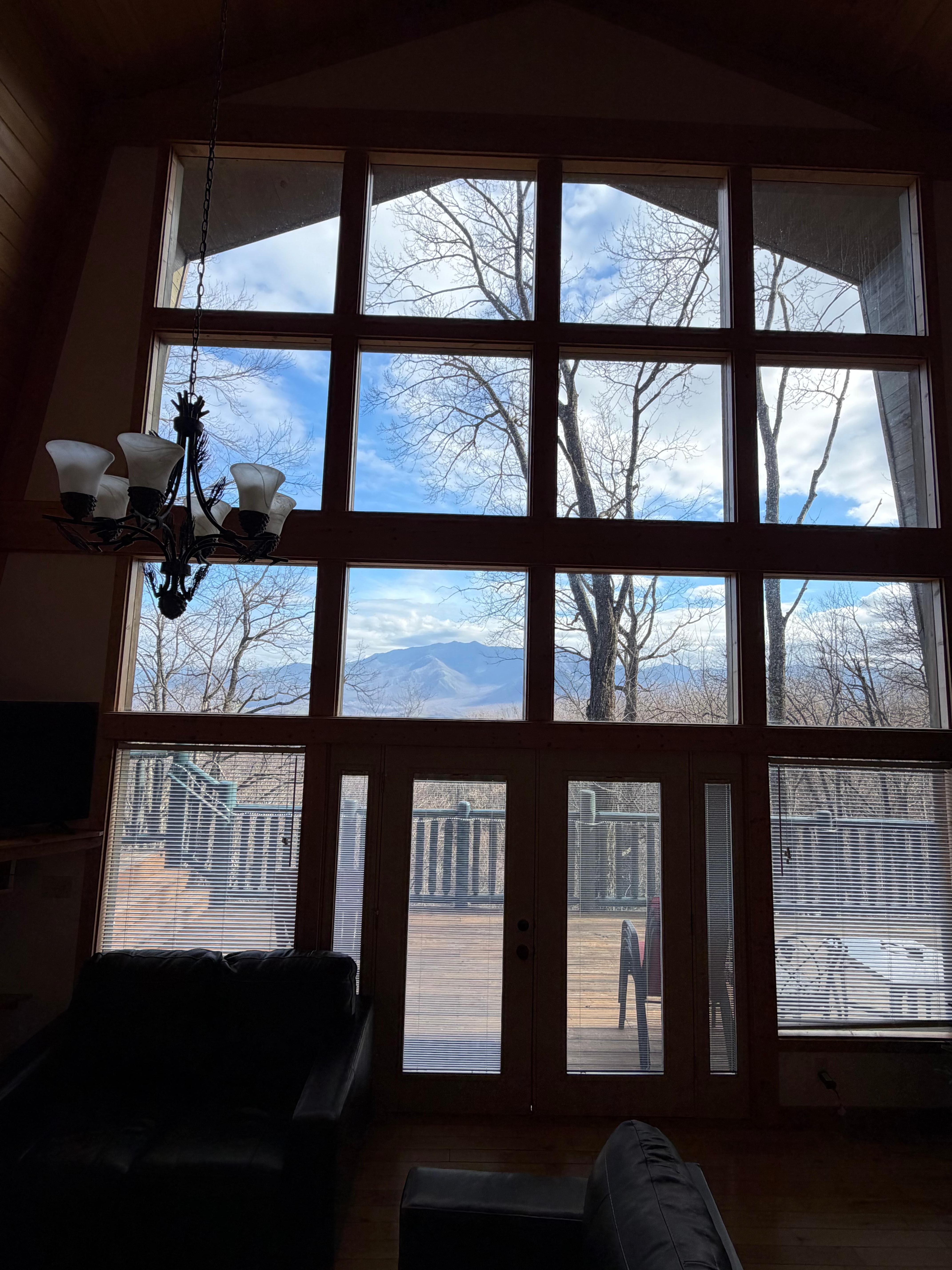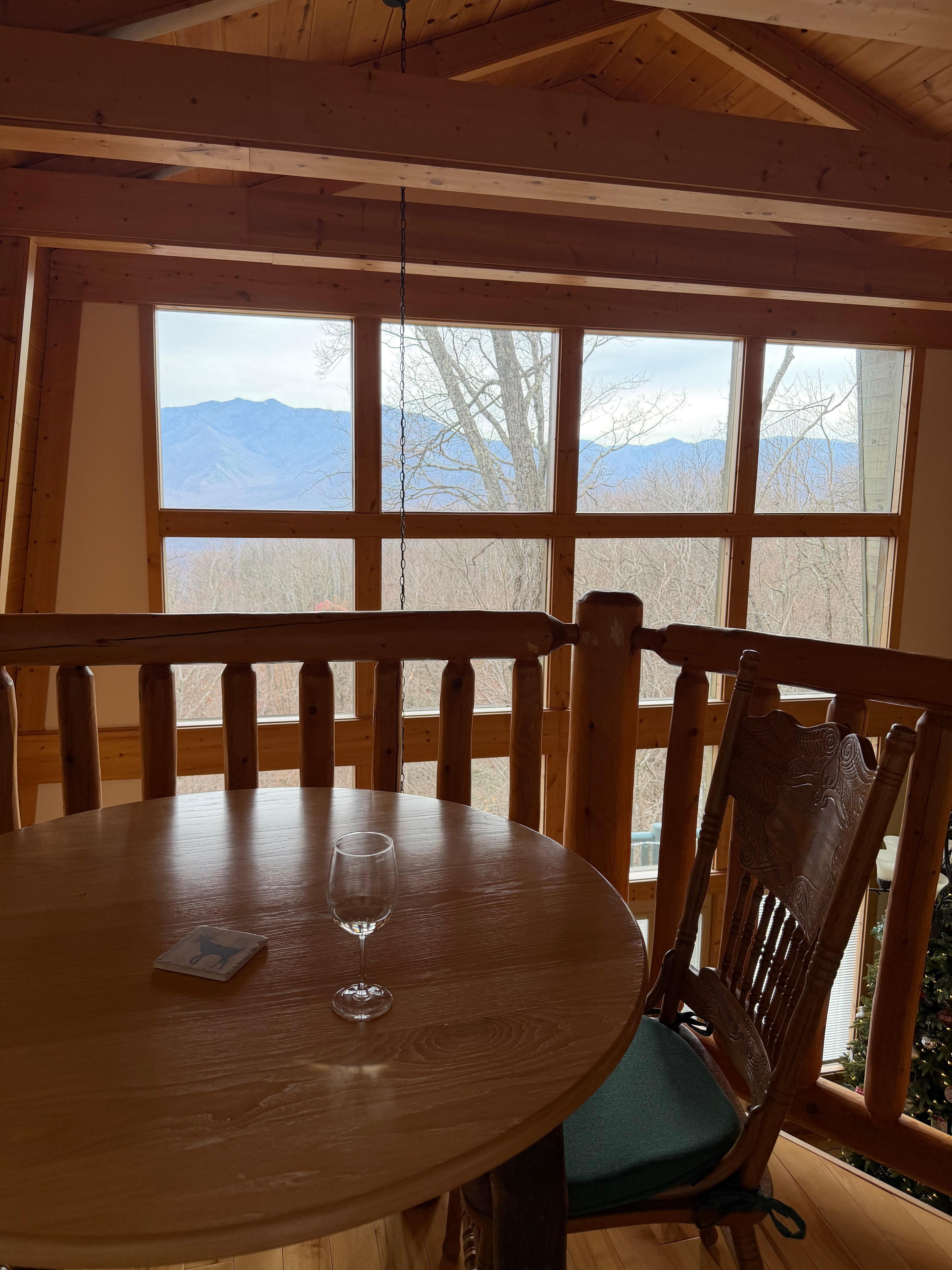 When you arrive at A Bear Above cabin, you will experience amazing, majestic, mountain views of Mt LeConte. This roomy cabin is perched above the Ober Mountain ski lodge and downtown Gatlinburg with the National Park boundary, and an entrance to Cove Mountain trail, just across the road. Private and quiet location for family fun or getaway for couples looking to recharge. Near the Great Smoky Mountain National Park entrance, Ober Mountain Ski Resort, Downtown Gatlinburg, and Gatlinburg bypass to Pigeon Forge. This mountain retreat is easily in one of the most convenient locations in the Smokies. Being across the road from the National Park, makes this particular cabin great for wildlife encounters (black bears). Please Be Bear Aware. Keep your distance from the bears and do not feed them! Remove all food from your vehicles as a deterrent . A great way to see the area is from the nearby Aerial Tram to Gatlinburg. For entertainment, nearby Ober Mountain (formerly known as Ober Gatlinburg) has the Ski Mountain Coaster, Zip line, a wildlife zoo, Mountain bike trail, ice skating, snow skiing, alpine slide, snow tubing, scenic chairlift, rock wall climbing, kiddie umbrella ride, amaze'n'maze, carousel, trails, ice bumper cars, shops, and dining. Gatlinburg provides great fun during all seasons. This is one of the only cabins with great views in all three (3) directions. The view facing the northeast side is towards Pigeon Forge & Sevierville in which direction you can see for miles and miles. All the rear windows face Southeast towards the spectacular mountain views of Mt LeConte and Chimney Tops.