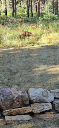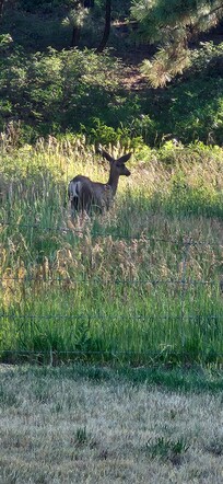 The home has a well-stocked kitchen, which features a refrigerator, microwave, oven, gas range, dishwasher, and other supplies. A washer and dryer are available as well. Enjoy your morning cup of coffee on the front porch, overlooking a peaceful meadow. There is a spacious back porch for outdoor dining and even a gas grill if you’d like to barbecue. Gather around the propane fire pit to enjoy time with family and friends, while spotting wild turkey, deer. elk, coyotes and even the occasional mama bear and her cubs!