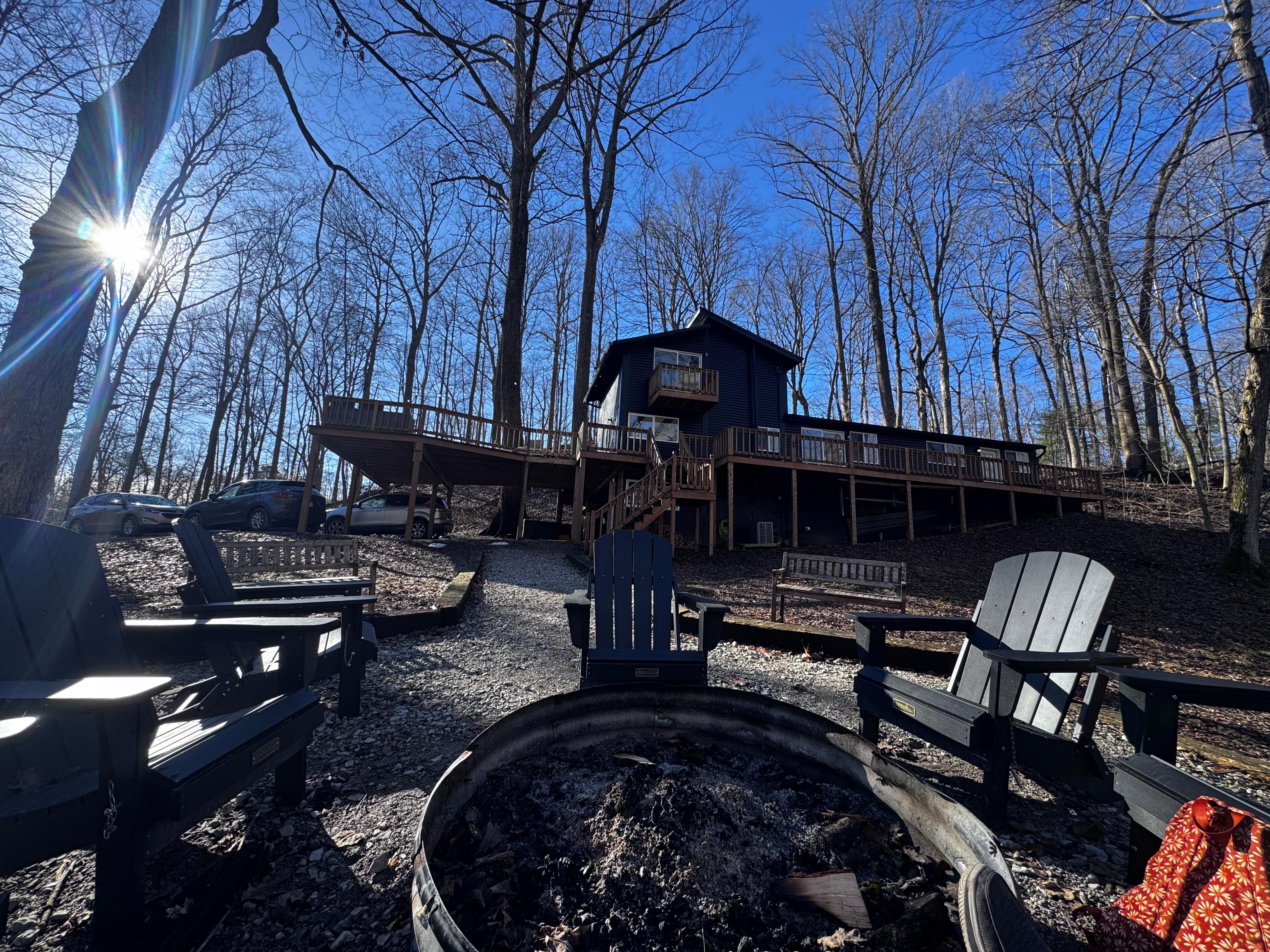 ・Wood-burning fire pit w/ Adirondack chairs