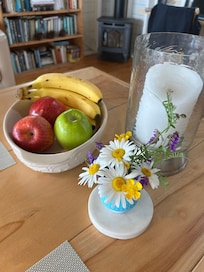 La cocina es moderna y bien equipada, y hay una gran terraza y barbacoa con impresionantes vistas del océano y la playa. También hay una chimenea de propano decorativa para las acogedoras tardes de otoño. Los barcos de langosta arrastran trampas al frente, las águilas se posan cerca, los alces, los gatos monteses y los zorros hacen apariciones, y las ballenas pasan la mayor parte del año; Te despertarás con estas vistas cada mañana y las disfrutarás todo el día. Disfrutará de la reclusión y las increíbles vistas en una de las partes más espectaculares de Cape Breton. Mientras el día se convierte en noche en tecnicolor, relájate, escucha música o ponte al día con cosas para las que no tienes tiempo en casa.
