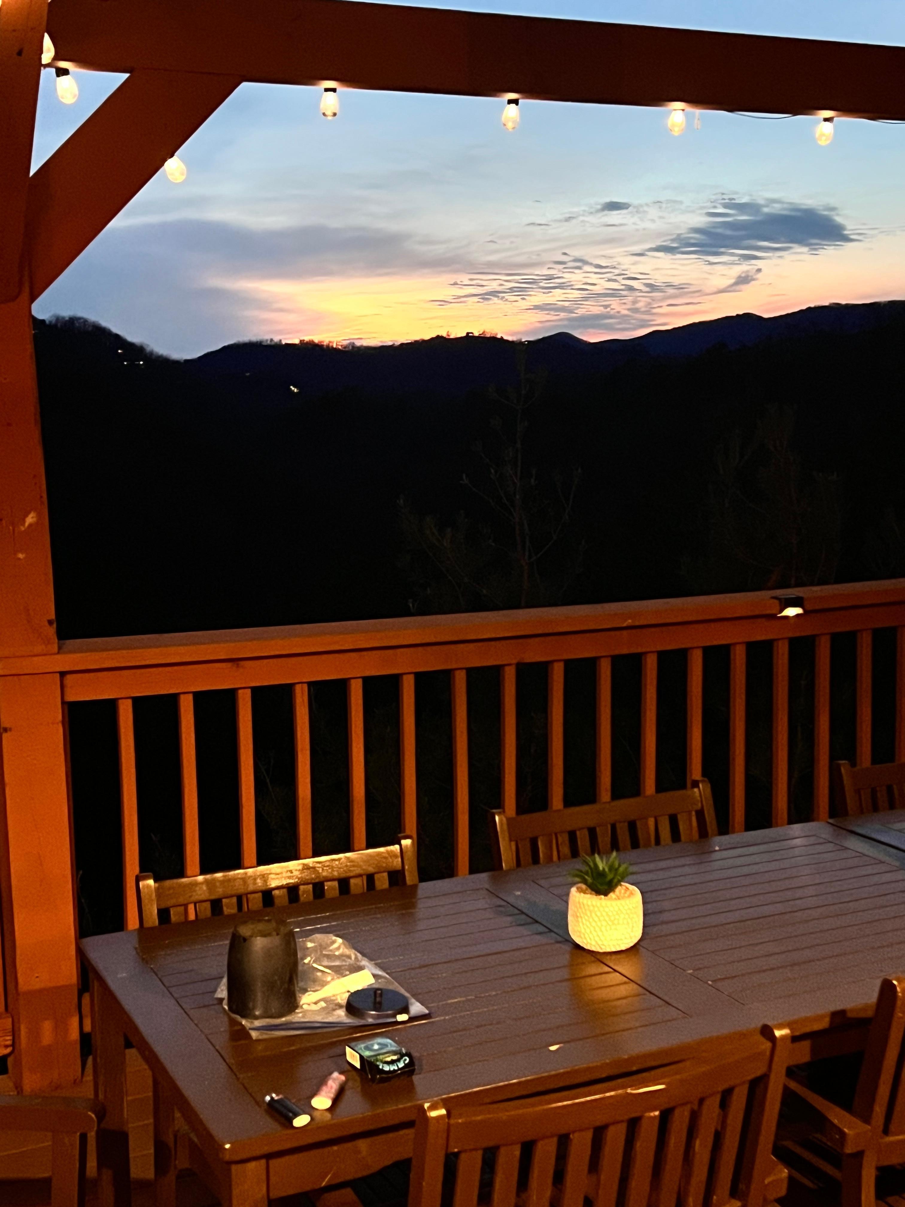 Inside, you'll find a wonderful rustic and cozy cabin/lodge feel with super comfortable furniture, large fully equipped kitchen, central A/C and central heat, as well as a cozy gas fireplace for those cooler nights and a soothing hot tub for relaxation. We also offer fast wifi internet for your convenience. But what really sets our home apart from others in the area is the spectacular views! Step out onto one of our two outdoor decks and take in the breathtaking sights of the Smoky Mountains, with your own private view of tens of thousands of trees stretching out for miles. We invite you to come watch a sunset here - it will truly take your breath away.