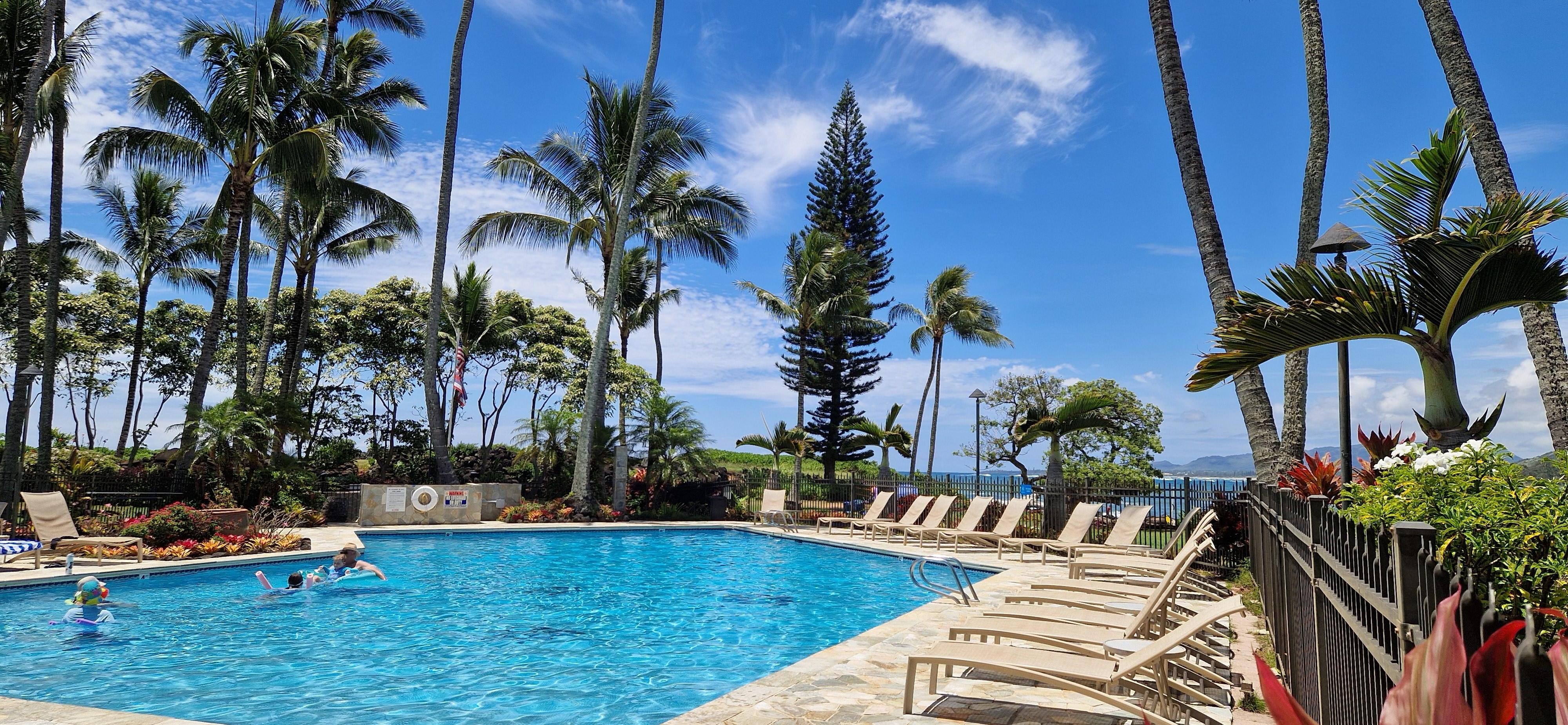 The condo is wonderfully stocked with the many items needed to enhance a tropical vacation, including beach towels, picnic coolers, beach chairs, a beach umbrella, 2 flat-screen TVs, games and movies. The kitchen has a great selection of spices, and other sundries, and there is also a new Keurig Supreme coffee maker and a sampling of Kauai Coffee K-Cups to kick-start your day. The pool is the perfect spot to relax after a day of adventure, and you will appreciate how beautiful and well maintained the tropical plants and property are kept by the on-site care takers.
