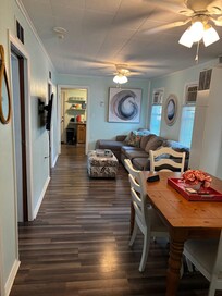 Living Room--Incredibly Comfortable Sofa(which can sleep 1) and Television with Roku for Streaming. Dining Room Table.