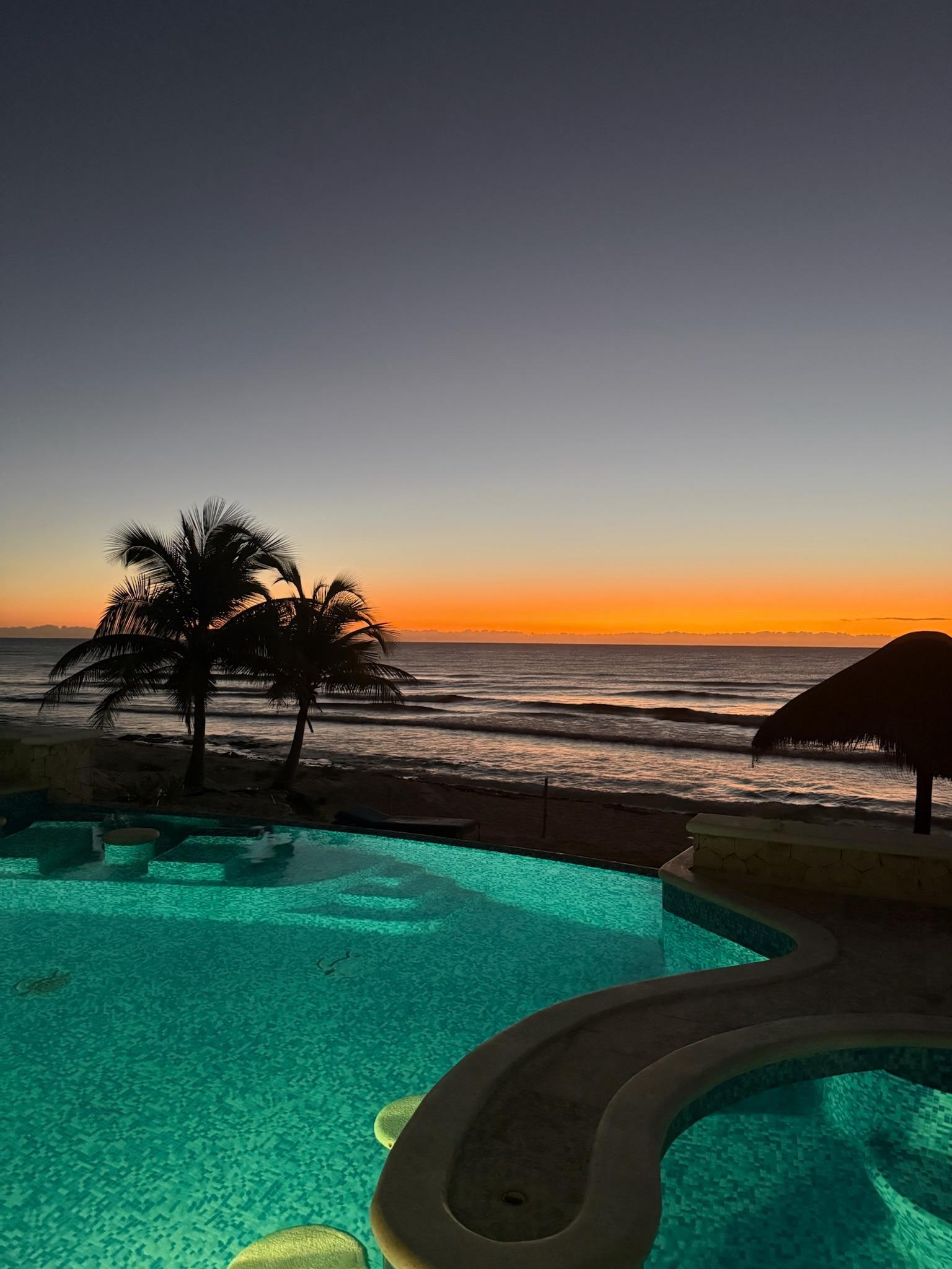 Los 6,000 pies cuadrados de esta exquisita villa privada frente al mar están disponibles para alquilar durante todo el año. Ubicada en Tankah, a solo minutos de Tulum, México Villa Escapar es el escenario perfecto para unas vacaciones familiares, una excursión con amigos o una escapada romántica rápida. Esta lujosa villa ofrece suficiente espacio para alojar cómodamente hasta 12 huéspedes. Nuestra casa de tres niveles frente a la playa cuenta con una magnífica entrada abierta completa con una pintoresca fuente y dos cajas de escaleras sinuosas que conducen a áreas comunes lujosas y habitaciones privadas. Villa Escapar incluye 2 habitaciones privadas con camas king, 3 habitaciones con una cama queen, 5 ½ baños, una cocina de chef totalmente equipada, sala de estar con TV de pantalla plana y sistema de sonido envolvente Bose, y una casita a 30 pies de la casa principal. . La espaciosa terraza del nivel superior ofrece increíbles vistas al mar desde nuestras habitaciones privadas y cómodas habitaciones al aire libre. El salón de la azotea es el escenario perfecto para románticas puestas de sol / amaneceres, libaciones nocturnas o observación de estrellas. Disfruta de una impresionante vista completa del océano y acceso a pie a la hermosa piscina infinita completa con salones incorporados y un bar en la piscina con vista a la playa privada de arena blanca. Relájese en la terraza cubierta con 2 sofás completos, palapa cubierta, área de comedor y una hamaca. Nuestras palapas frente al mar incluyen salones de teca. La playa en frente de la casa es el lugar de anidación de la tortuga laúd, una especie en peligro de extinción. De mayo a septiembre ponen sus huevos y también puedes ver a las crías de tortuga salir del cascarón. Convenientemente ubicado, esta villa única en su tipo se encuentra a 75 minutos en auto al sur del aeropuerto de Cancún, a 40 minutos de la encantadora Playa del Carmen, y a poca distancia en auto de la ciudad de Tulum. Nuestros cuidadores excepcionales en el lugar están listos para cuidarlo excelentemente. Entonces, si solo desea relajarse y disfrutar de la serenidad de la dicha frente al mar de Villa Escapar o disfrutar de toda la aventura que la rodea en Tankah, Tulum y Akumal; te damos la bienvenida a nuestra villa!