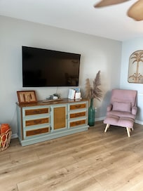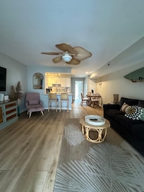 Welcome to our beloved beach condo, Take Me Awave. Coastal, modern, one bedroom condo with two balconies. One large balcony off of the living room with ocean views, one off of the bedroom facing the canal with amazing sunset views. Walk across the street to the beach access- about a 1 minute walk. Fully renovated as of July 2022! You'll have a great time at this comfortable place to stay.
