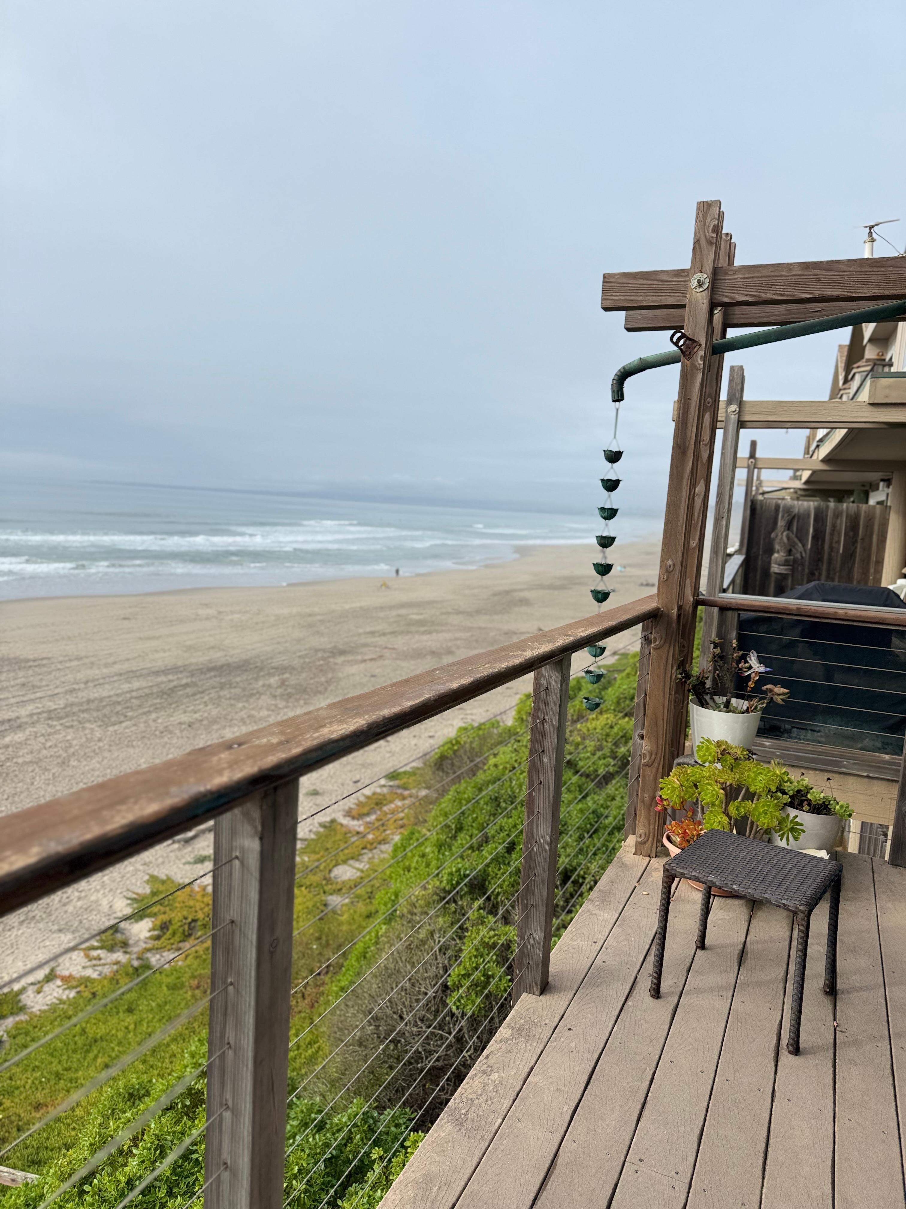 Our family-owned Beach Getaway is located just South of Capitola, Ca. This 3 bedroom 3 bathroom townhome welcomes you to your home away from home with an added extraordinary beachfront view and direct beach access to the sandy beach, only steps from our door! Our family home was designed with the intention to make you feel all of the beach vibes so that you don't even want to leave the deck! From the deck you get a panoramic view of the sea life; watching, sea otters, birds, seals, dolphins, and even whales play in the water!