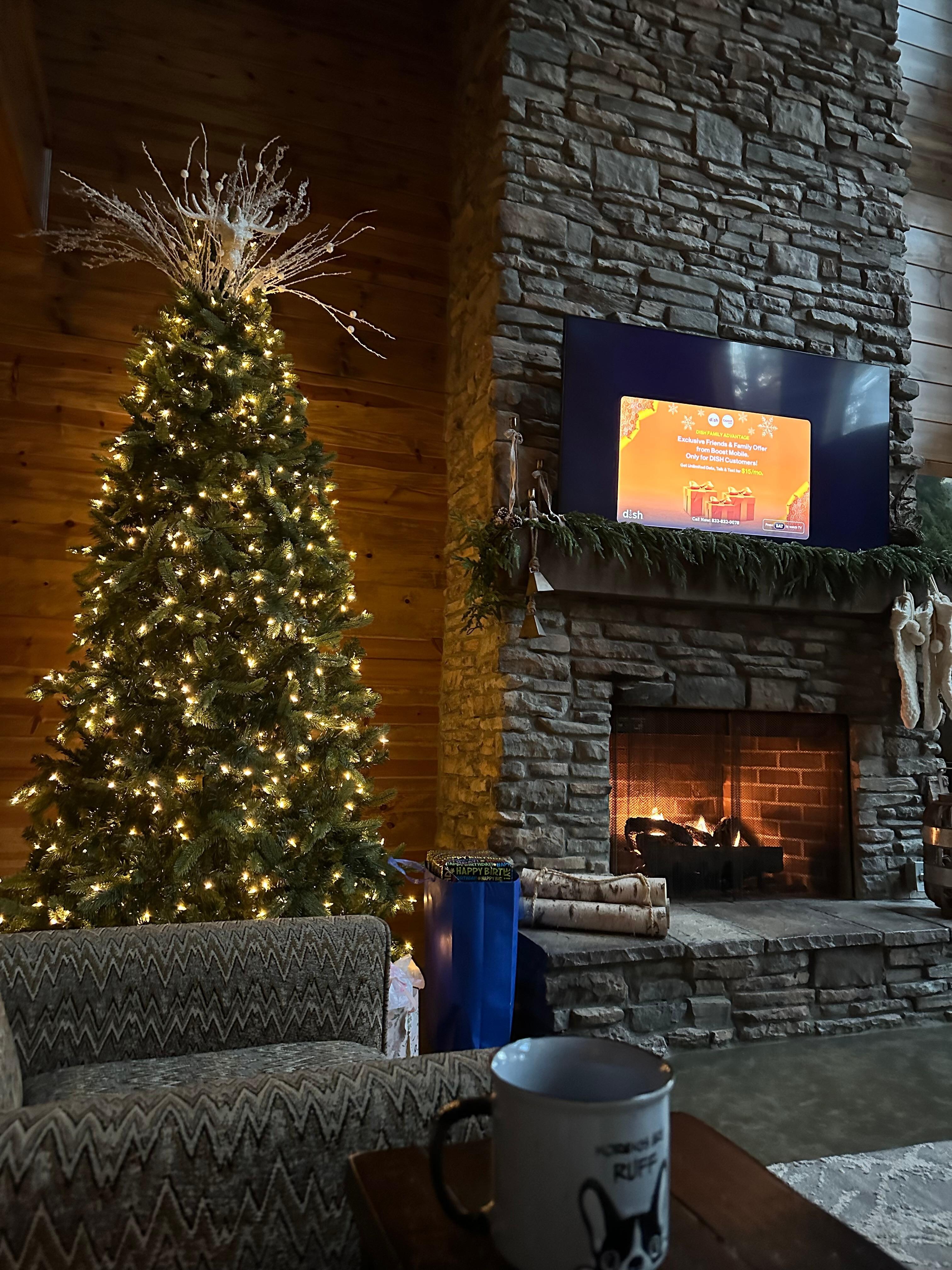 ⦁ wood burning fireplace on covered porch, outdoor HDTV