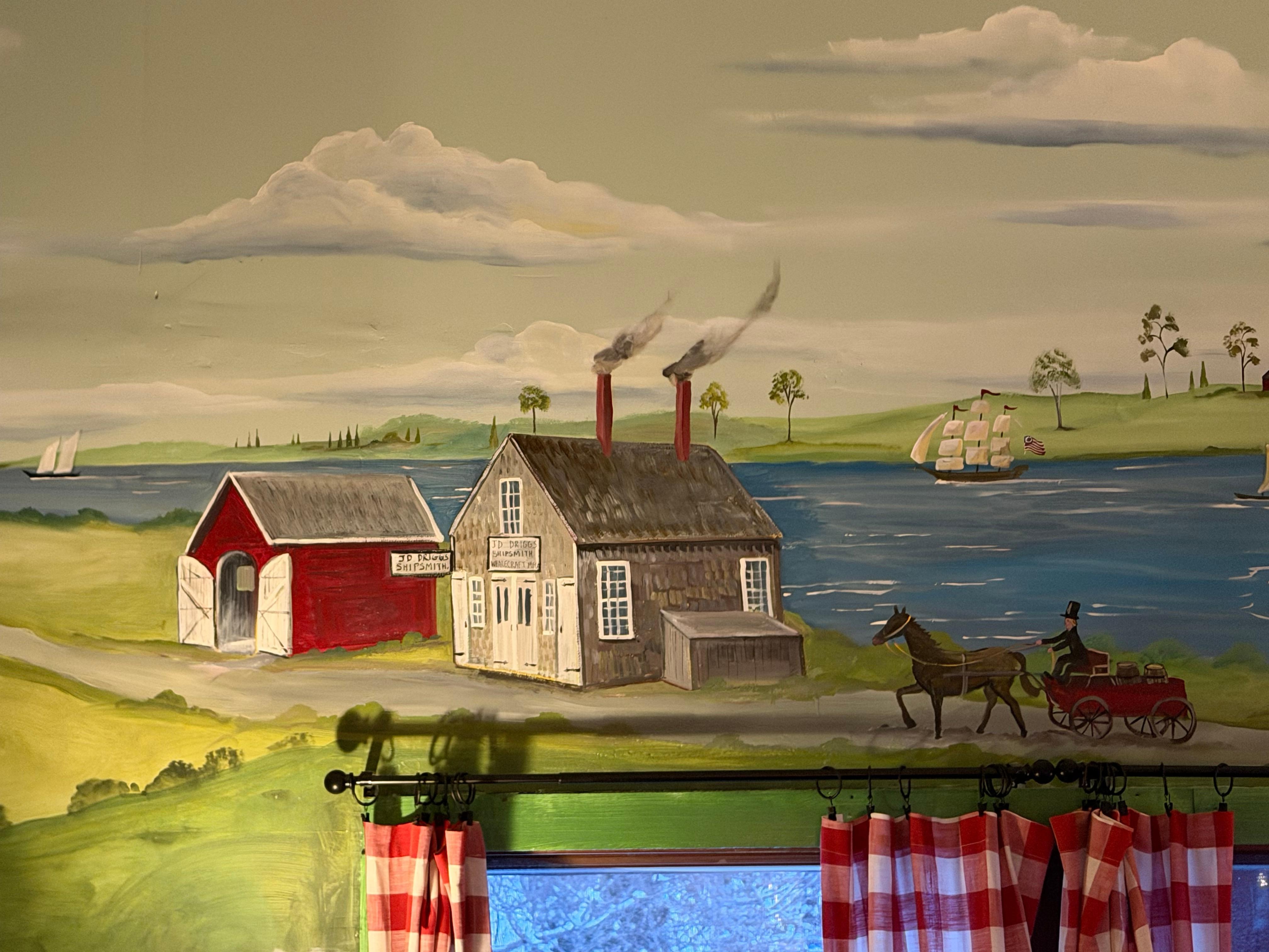 The Williams Home Keeping Room is our intimate dining area, which seats up to 10 guests and features a room-length nautical mural, Sonos System speakers for ambient background music, and plenty of antique dishes to set the mood for a memorable dining experience. You're welcome to move the tavern table from the kitchen to the Keeping Room to accommodate a larger dinner gathering.