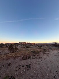 More than 2 miles down dusty dirt road you leave all of your city cares behind. No street lights to obscure the carpet of stars overhead. Just a gentle breeze and whisper of the majestic Mojave. Sit out by the wood burning chiminea and sip a something and watch the sky turn from blue to purple to black.