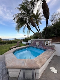 Long term lease available for this highly desirable south facing Mt Soledad cul-de-sac home. Fully furnished with south facing view looks over Mission Bay, the ocean, and Mexico in the distance. Ultra private - no one can look into backyard and jacuzzi. Single story Spanish home features Front entry atrium and entry patio garden. Inside has about 2600 ft2 living space with two large living rooms each with fireplaces, smart TVs and surround-sound stereos, 3 large bedrooms, 2 baths. The large, central kitchen has two breakfast counters and all the obvious kitchen appliances - ask for details. Large office with designer workstations and large windows to interior atrium. Backyard is south-facing, comfortable, and private with patio lounges, chairs, tables, BBQ and spa. (Use of spa is a nominal extra fee due to thoughtless guest that ran up $1253 utility bill - there is no way for me to limit usage and monitor it. Quite frankly, I often do not charge anything once we have an understanding ) Motion cameras and lighting in front and back of the home. Home and yard have locked security gates including service gate with key code access. Whole home Wi-Fi internet provides perfect coverage throughout the house at 220 Mbps DL, 40 Mbps UL. Smart TVs receive all major broadcast TV stations plus standard streaming services.