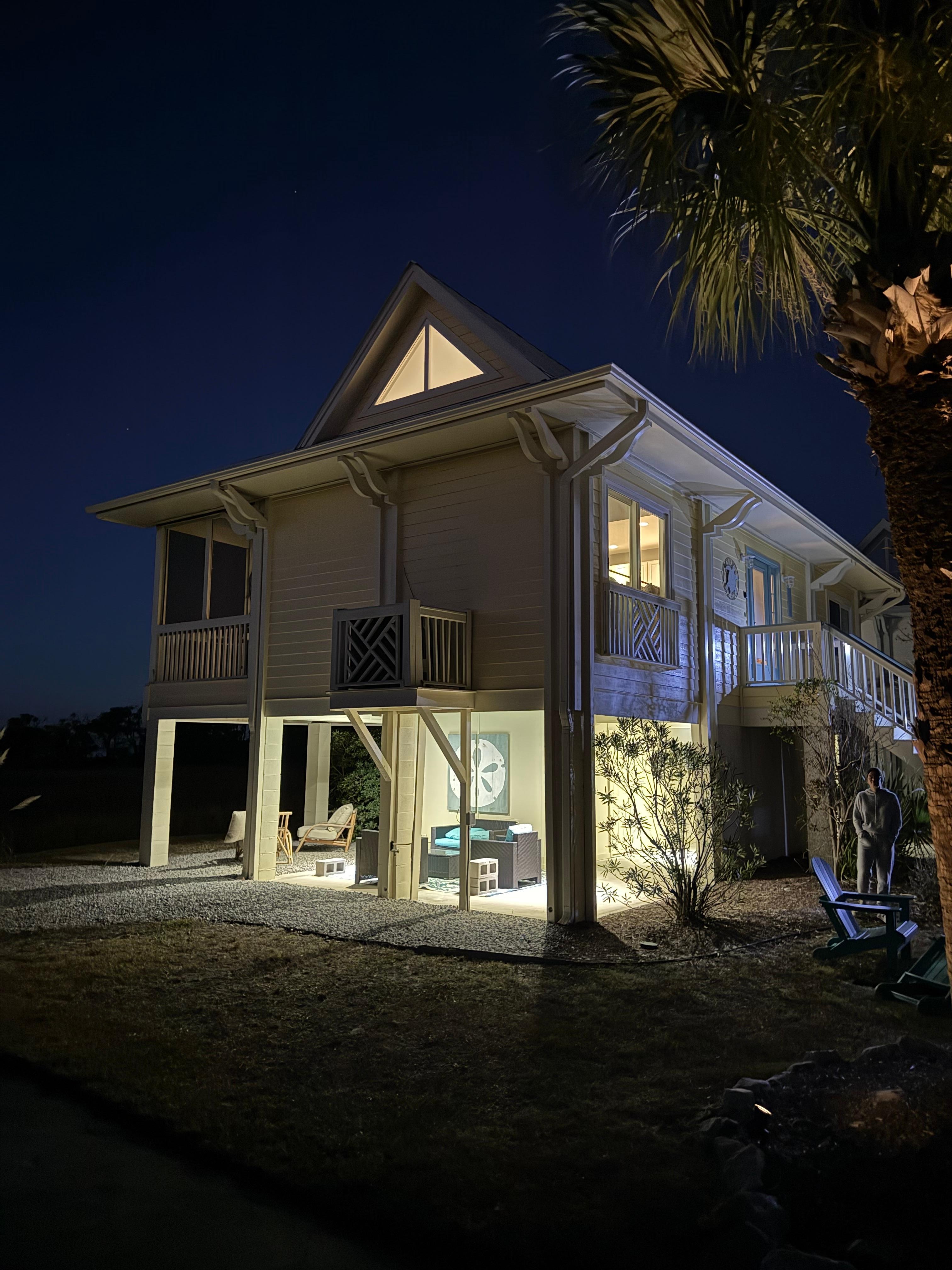 An open floor plan with a fully equipped kitchen, coffee bar, dining area for 4 and spacious living room with a Smart TV. There is a day bed with a trundle in the living room which allows the house to sleep 4. There is outdoor seating on the screened in deck with fabulous views of the St Helena Sound and Harbor River Bridge. The master bedroom has a king size bed, an en suite bathroom with a walk-in shower, and a private deck. Take in those same amazing views of the St Helena Sound right from bed! There is a washer/dryer on site for your convenience. There is a patio area under the house with a gas grill and additional outdoor seating. Enjoy the peace and serenity of this charming, semi-secluded cottage located at the end of Harbour Key.