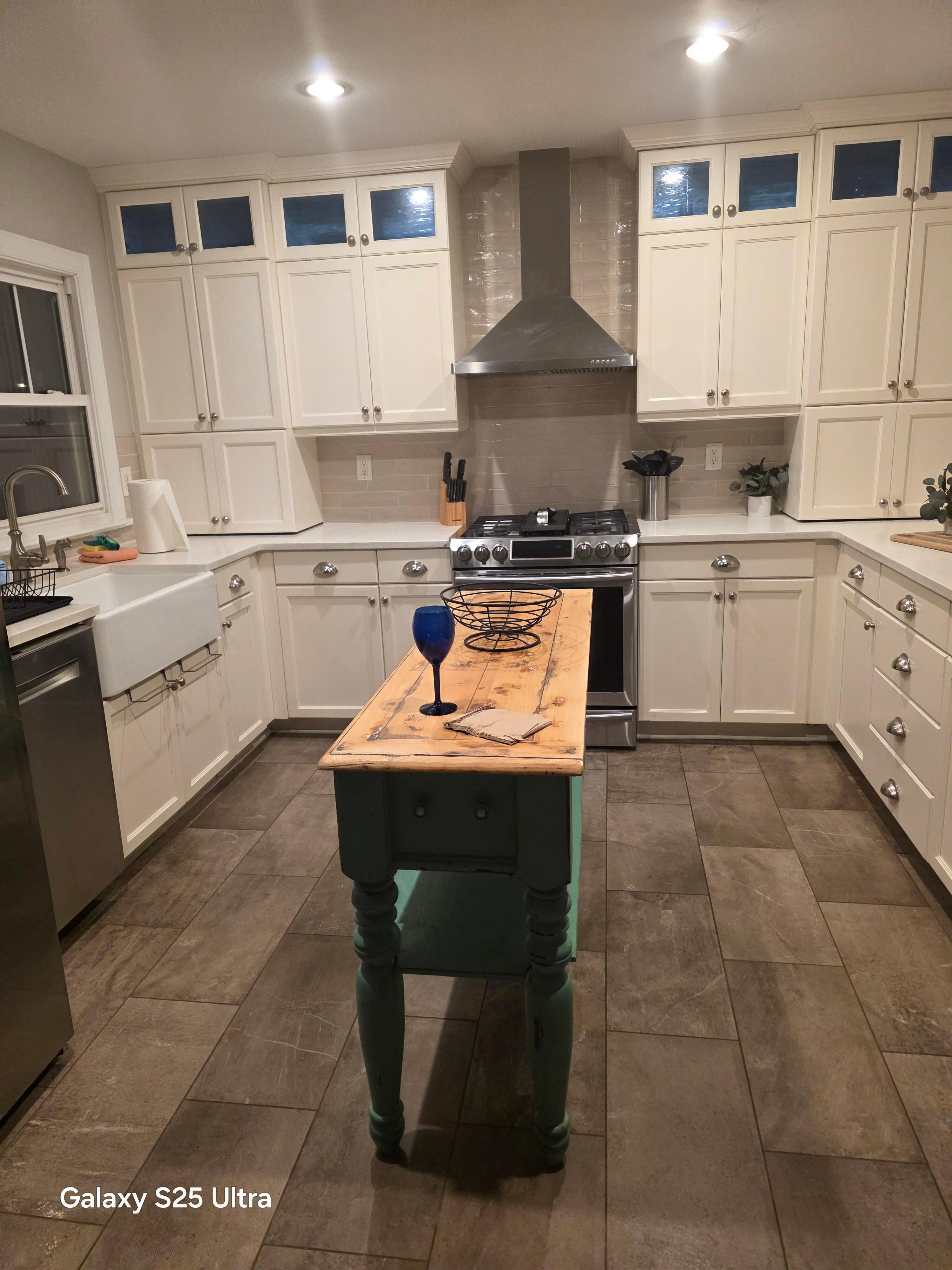 The fully-functioning kitchen features stainless steel appliances, toaster, pots/pans, plates/bowls & utensils. Eat together at the dining table or outside on the furnished patio!