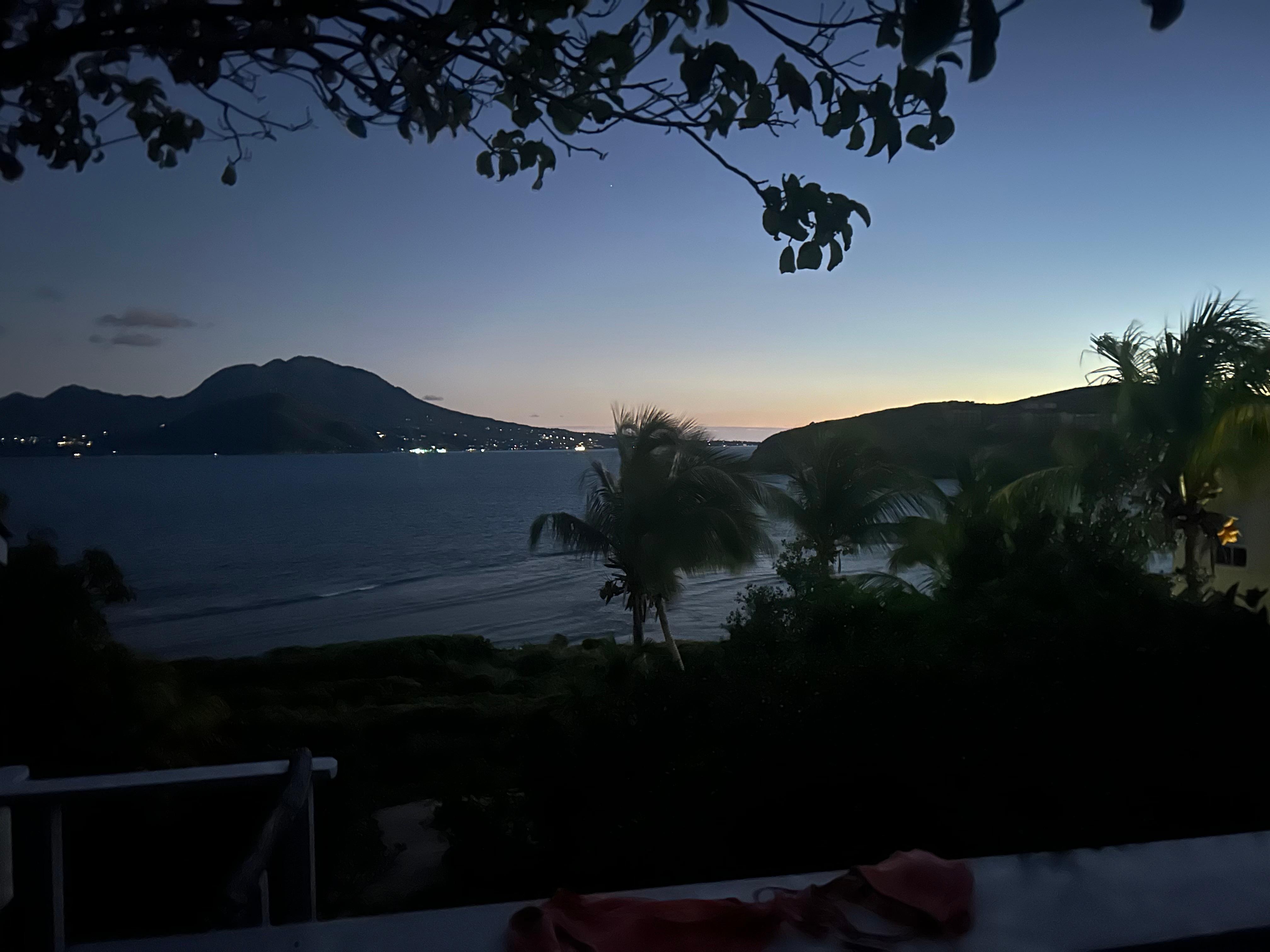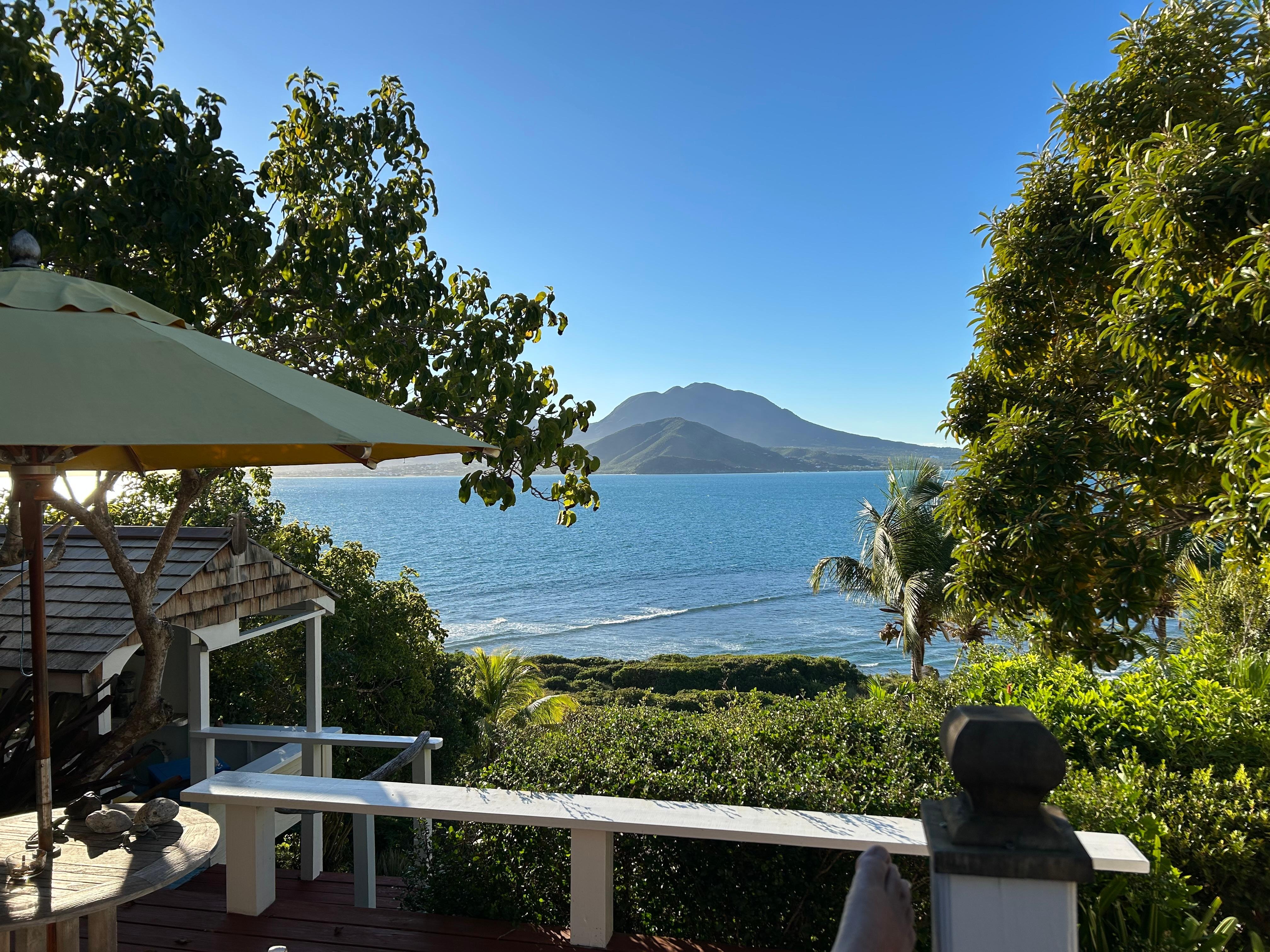 Tome una copa al atardecer y sorpréndase con la vista excepcional de Nevis en la distancia. Observe cómo los colores se desvanecen mientras los yates y veleros navegan hacia las aguas azules del Caribe al final del día.