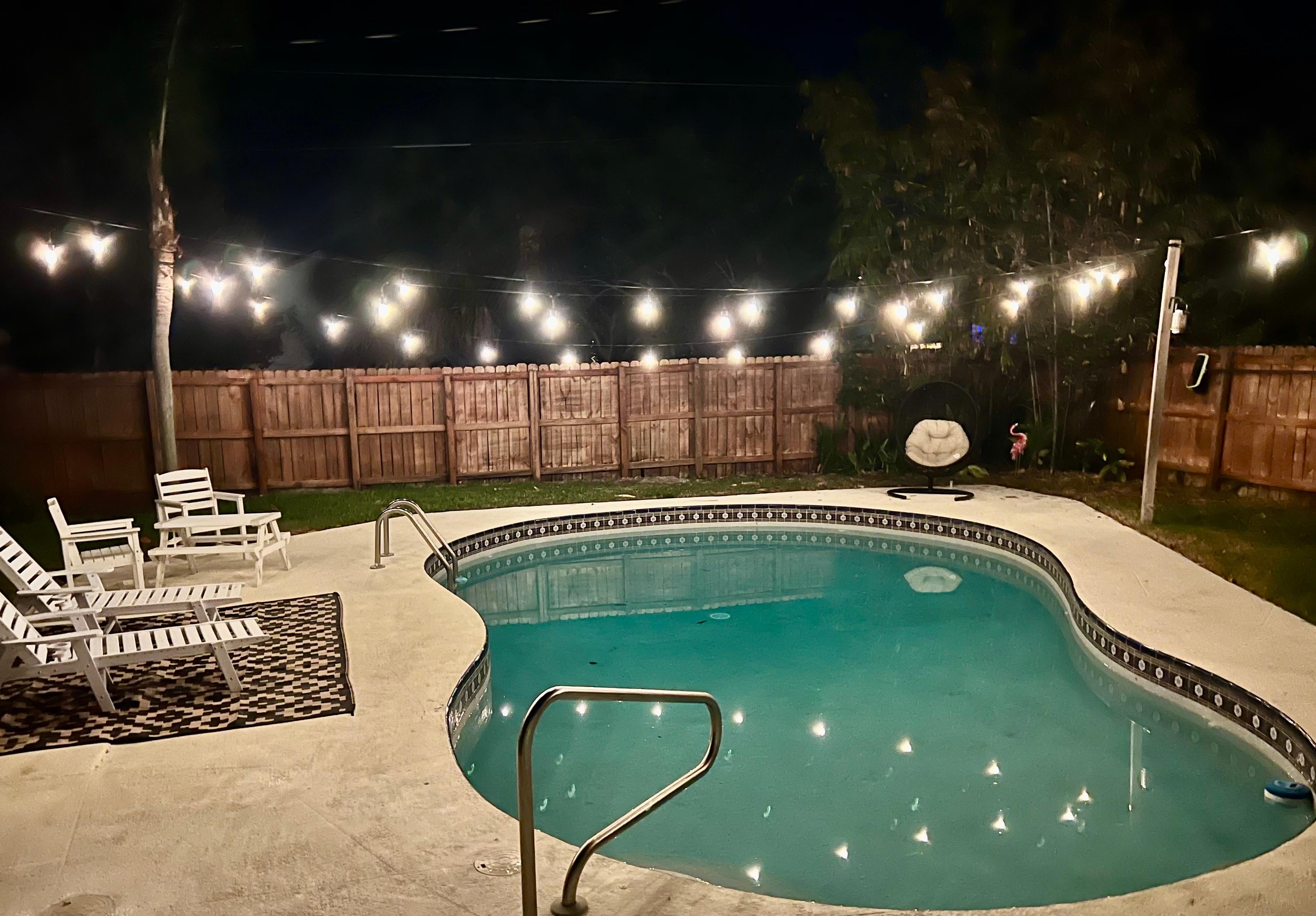 Your oasis awaits! This newly remodeled pool home in downtown Lake Worth Beach is guaranteed to impress. Brand new pool heater November 2025! The fenced in backyard is fully equipped with your own private pool, lounge chairs, umbrellas, a propane grill and fire pit, plus plenty of pool toys and yard games. Inside the home you will find a spacious master bedroom with Tempur Pedic Mattress, walk-in closet, dual vanity sinks, and a chic walk-in shower. The 2nd bedroom includes a queen bed and it’s own full bathroom with tub/shower combo. The remodeled kitchen is complete with all new stainless appliances (the range even has an air-fryer built in!). The formal dining room is positioned by the foyer and is an excellent gathering place for guests. The living room is centrally located adjacent to the kitchen and to the backyard, and includes a new 55” smart TV and a convertible sleeper sofa. In the front of the home you can dream your days away on rocking chairs under your covered front porch or watch the kids play underneath the big shade tree and swing. There are 4 beach cruisers provided in the carport and washer/dryer available in the attached laundry room. This home is situated 10 blocks to downtown Lake Worth, 7 blocks to LW Public Golf & Beach Club, 5 minute drive to beach, 10 minute drive to downtown West Palm Beach, and 10 minutes to PBI airport. We hope that you will enjoy your time here as much as we have loved creating the space. **Due to high utility costs there is a $30 fee per day if you choose to heat the pool. Heating is optional, not required, but recommended between November through April.**