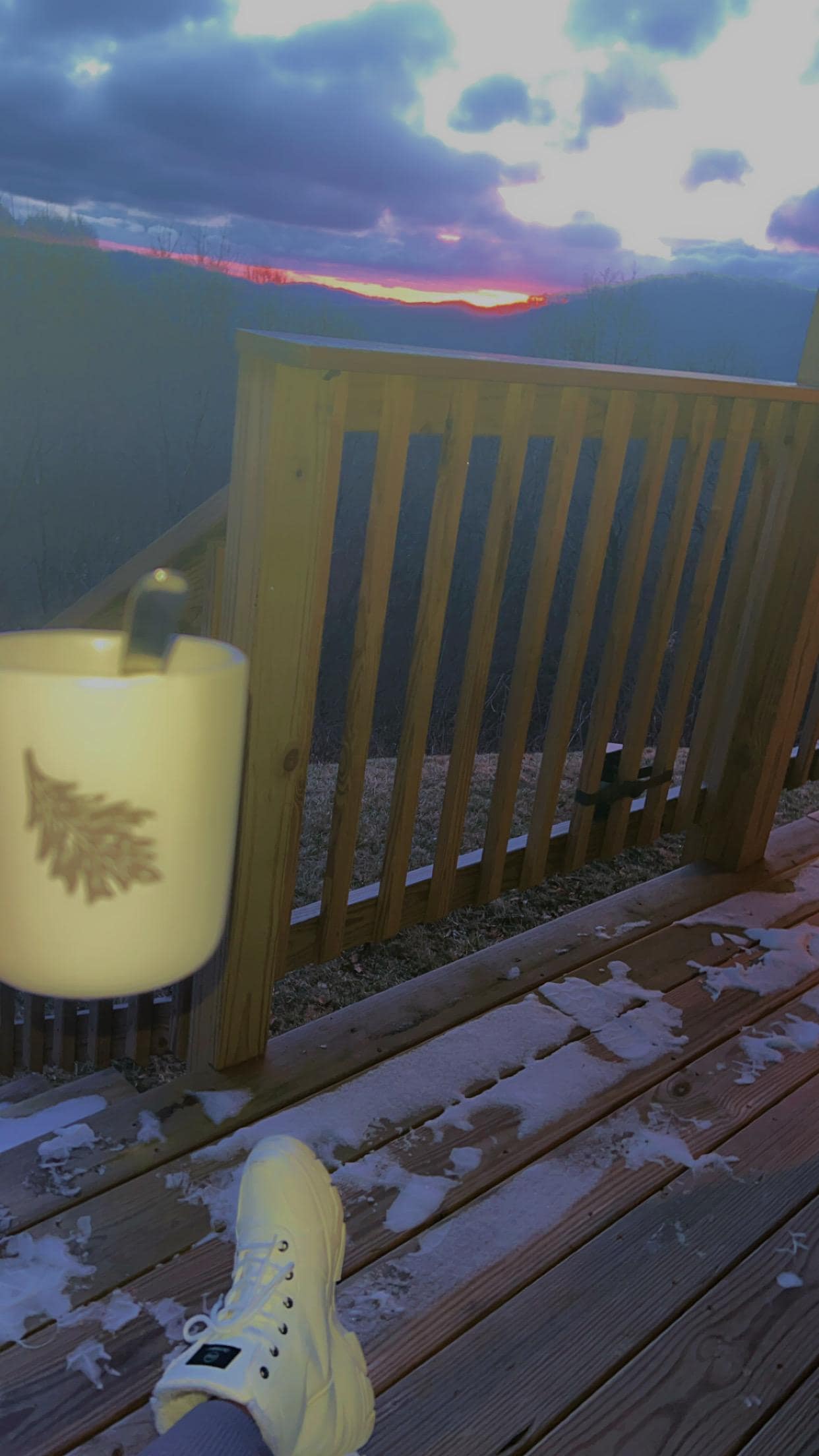 Home had modern outside decor and authentic cabin decor inside , home was very cozy and had an amazing view with beautiful sunsets and sunrises . Home was very clean and accommodating for my family