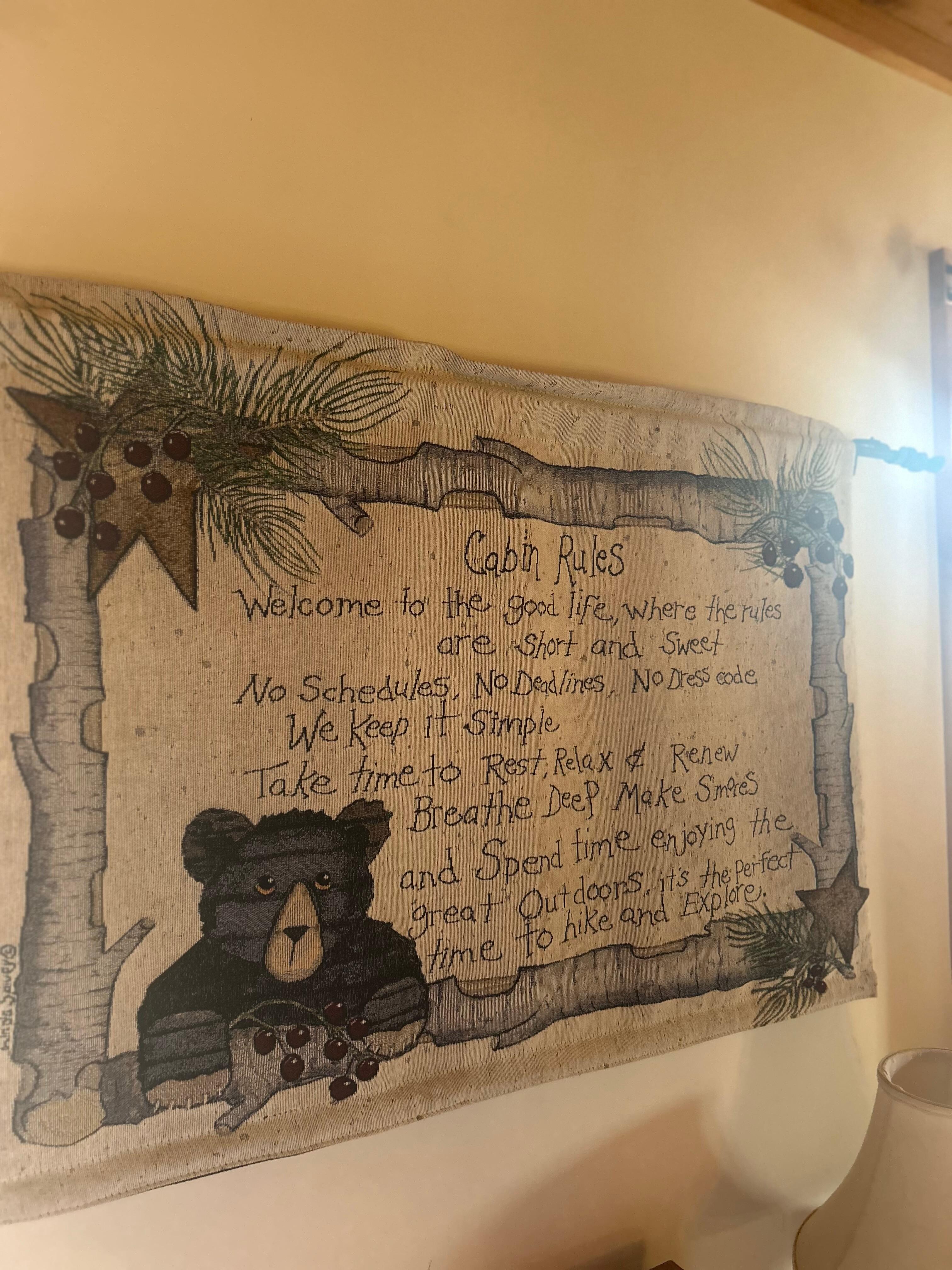 This cabin offers a full bathroom with tub/shower between the kitchen and the master King bedroom on the main level. There is a Smart TV and fireplace in the living room. Cozy up by the fire and watch your favorite shows on the streaming services, including SlingTV! There's a dining table for 6, full kitchen with microwave, dishwasher, and drip style coffee maker.