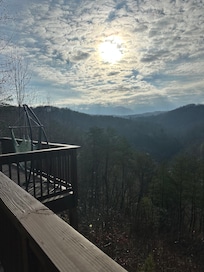 If you want better open views, continue out onto the deck where pictures can't quite capture the beauty that awaits. Here you can breathe in that fresh mountain air and feel the sun as you have a meal at our outdoor dinner table. After dinner drinks can be had in our brand new 4 person hot tub.