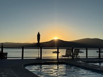 Después de la cena, podrá relajarse en la ducha de vapor o el balneario acuático de hidromasaje y bañera climatizada, retirarse a la tercera planta altillo y ver un movimiento en el cine en casa, jugar una partida de futbolín o ver el atardecer y el amanecer sobre el hermoso lago Tahoe de un de las tres cubiertas frente al lago.