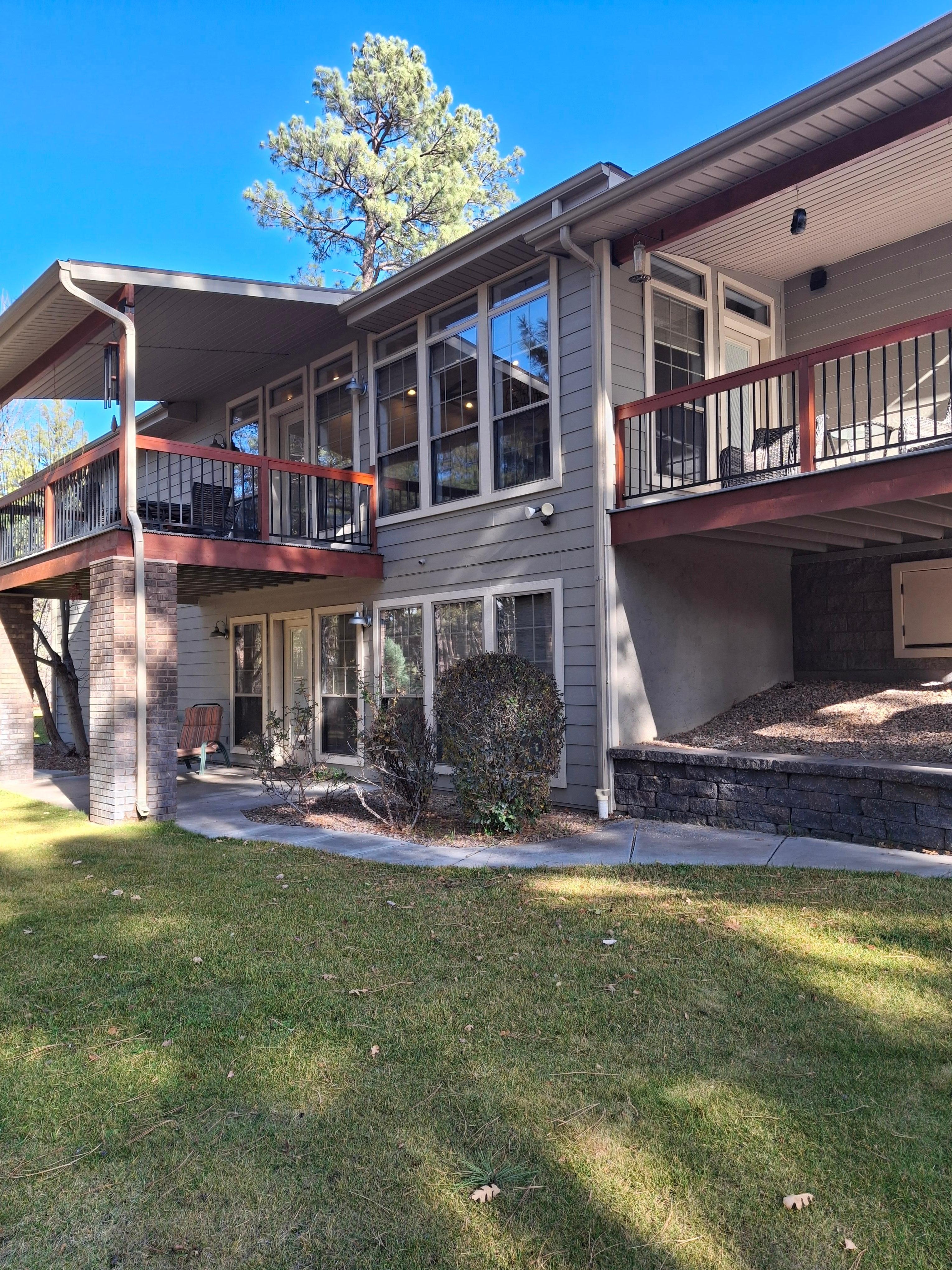 The ultimate getaway for your family or group nestled at the end of a cul de sac deep in the pines of Show Low. This property sitting on 1.2 acres of beautiful Ponderosa Pines has it all! Main level has two masters, additional bedroom & office. The main living space offers spectacular views of the forest where deer, elk, & other wildlife can be seen. Two decks can be accessed from kitchen/dining/living area that overlook the forest. Main living area is furnished with large sectional, wood pellet fireplace, & big screen (65") TV. The adjoining gourmet kitchen is a chef's dream with Viking & Wolf gas stove, griddle and ovens. Gorgeous waterfall island with barstools. Large wood dining table can seat 12. Pamper yourself in the Grand Master Bedroom by enjoying a luxurious chair massage followed by a relaxing soak in the garden tub overlooking the forest or shower in the multi-faucet walk-in oversized shower. Then, let the fun begin downstairs with retro table-style arcade games and Indiana Jones Pinball Machine. Electronic Roland Drum set, Steel Drum & Electric Roland Keyboard add to the excitement. Big Screen (65")TV, dvd player, large popcorn machine, fridge & microwave make this space complete. Your little ones will spend hours of fun in the playroom under the staircase complete with play kitchen, chalkboard and children's books. Downstairs opens up to ground level grass yard available for croquet, cornhole, or other yard games. A hammock awaits you in the forest as you watch for birds & squirrels, or keep an eye on the kids as they enjoy playing in the cool of the pines on the swing set/climbing wall/slide play structure or in the playhouse just their size! Follow the path to the Meditation Garden and spend some time letting the stressors of your life melt away. When it's time for s'mores, you will find a gas powered fire pit overlooking the back yard next to the basketball court. Don't want to miss your work out while vacationing? No worries, the 3 car garage is stocked with free weights & a bench and a TV too, still allowing you to park two cars inside. In the garage you will also find fishing gear, & camping chairs . For your peace of mind, this home contains a emergency back up natural gas powered generator that will automatically engage in the case of a power outage. If you can tear yourself away from this beautiful home, you will enjoying nearby golfing, hiking, fishing, boat rentals, antiquing and exploring in the White Mountains. Visiting in the winter months? Sunrise Ski Resort is an hour away, and there are plenty of sledding areas nearby. There are 4 outside security cameras (front yard, backyard, driveway, basketball court) and Ring doorbell cam.