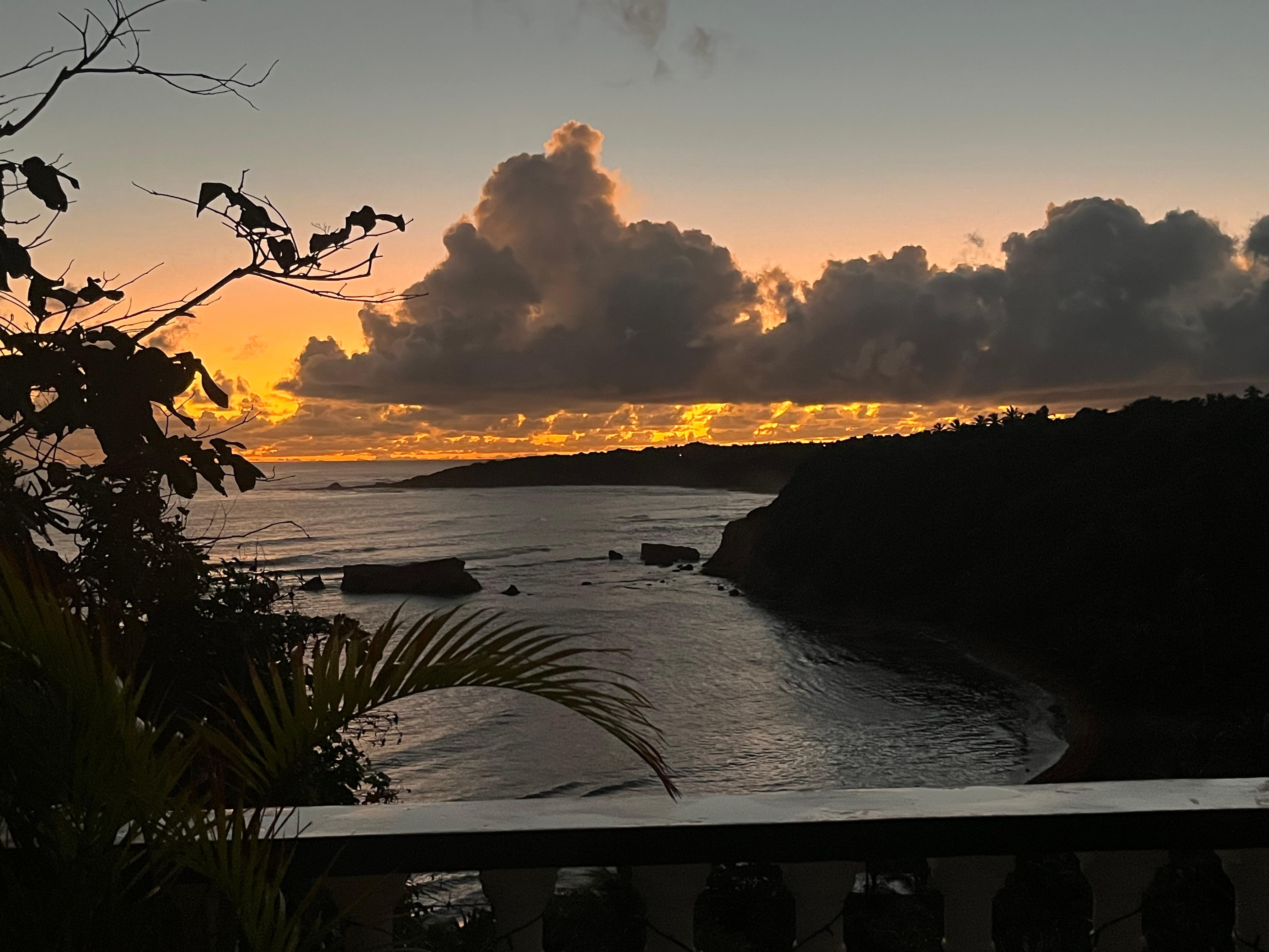 All three bedrooms offer direct ocean view and French doors opening onto a veranda. Off of the spacious living room, there is a large veranda facing the sea equipped with dining table and chairs as well as lounge chairs. There is also an upper veranda accessed from the two upper bedrooms. Both verandas have unobstructed views of Hodges Bay, the Atlantic Ocean, and mountain ranges to the south. The villa is surrounded by a tropical garden. There is a private driveway with off-street parking right at the villa's front door.