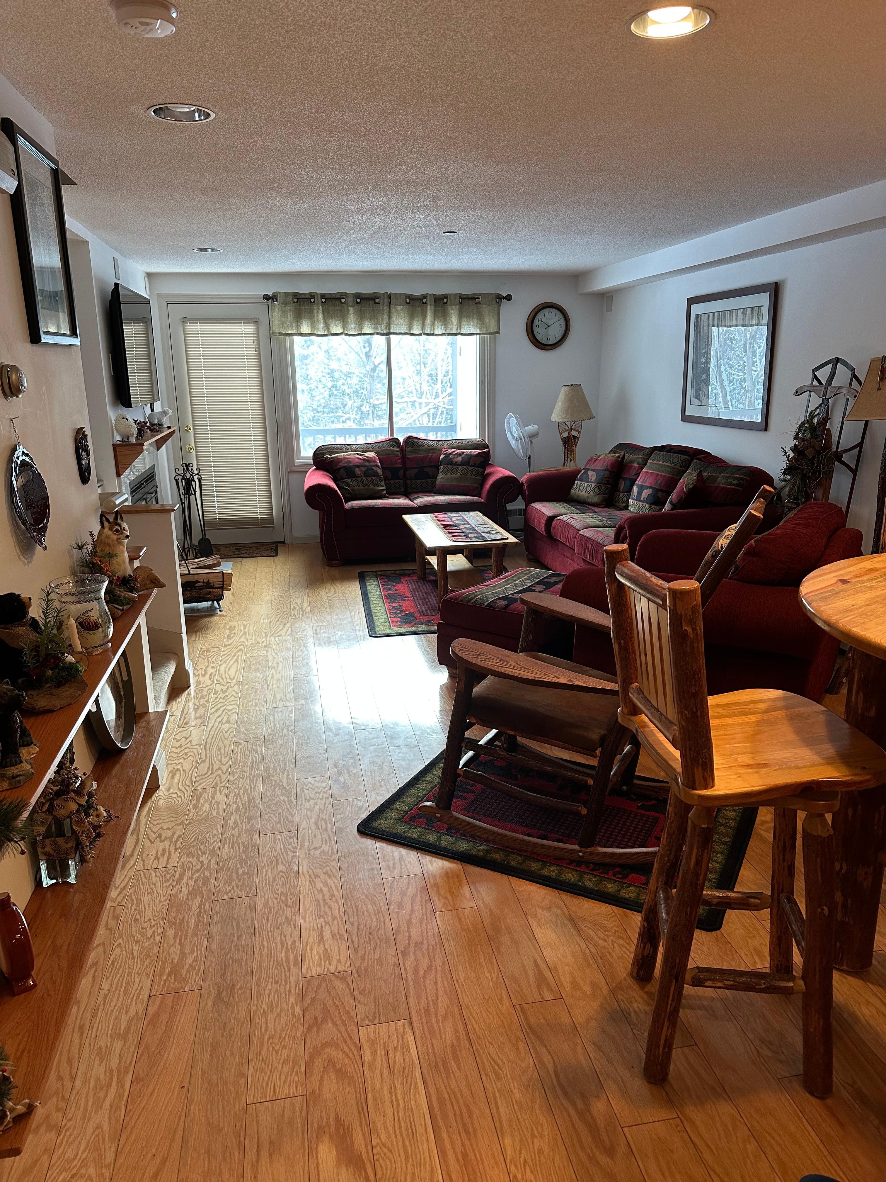 Riverfront Rustic condo with mountain views