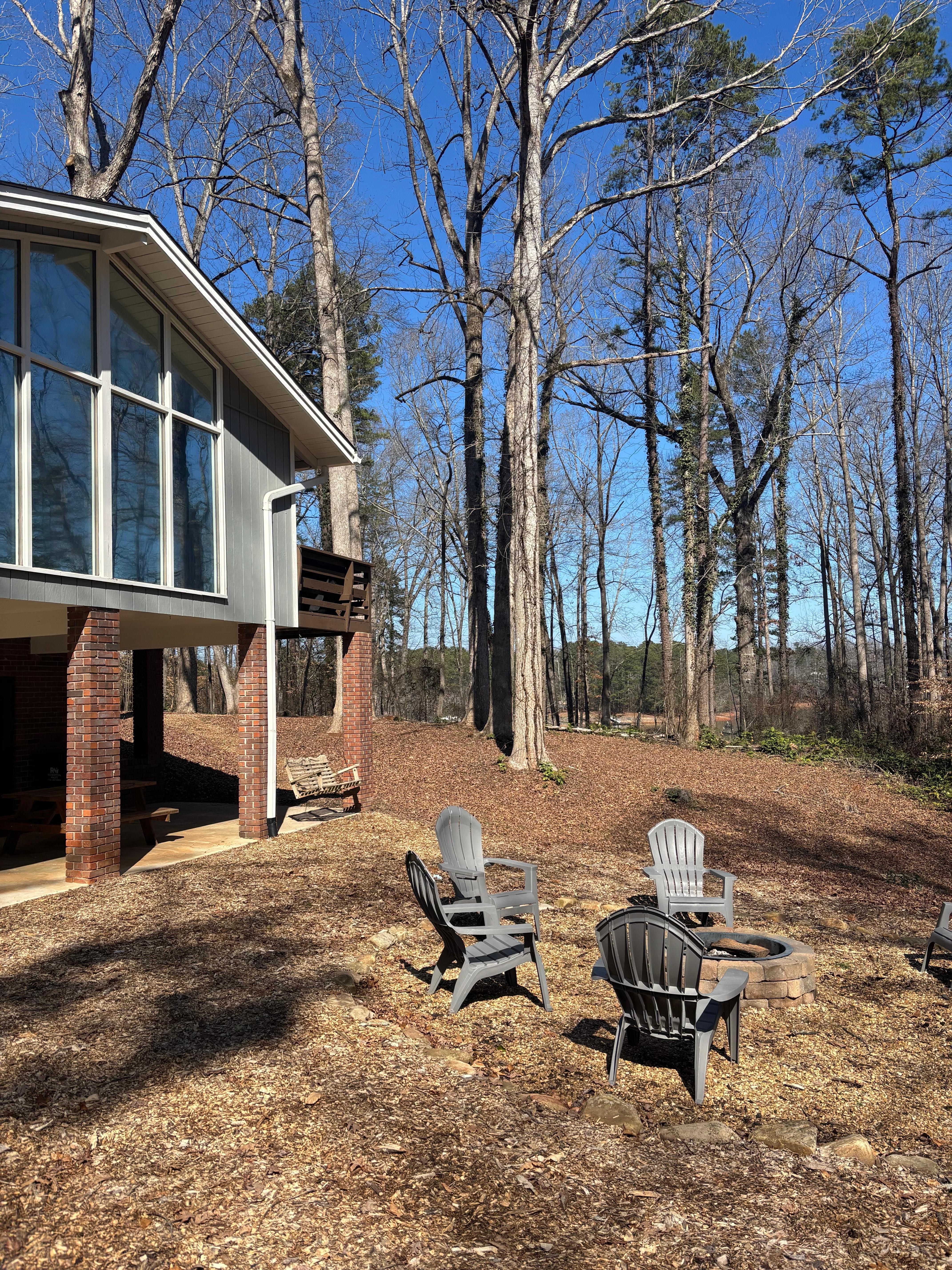 Relax with the whole family at this peaceful lake house on a wooded lot. Newly remodeled. Double decker dock with stunning views of Lake Lanier. Fire pit, corn hole, bonus room for kids with big screen TV. 5 minutes from the North Georgia Premium Outlets with restaurants and grocery stores close by.
