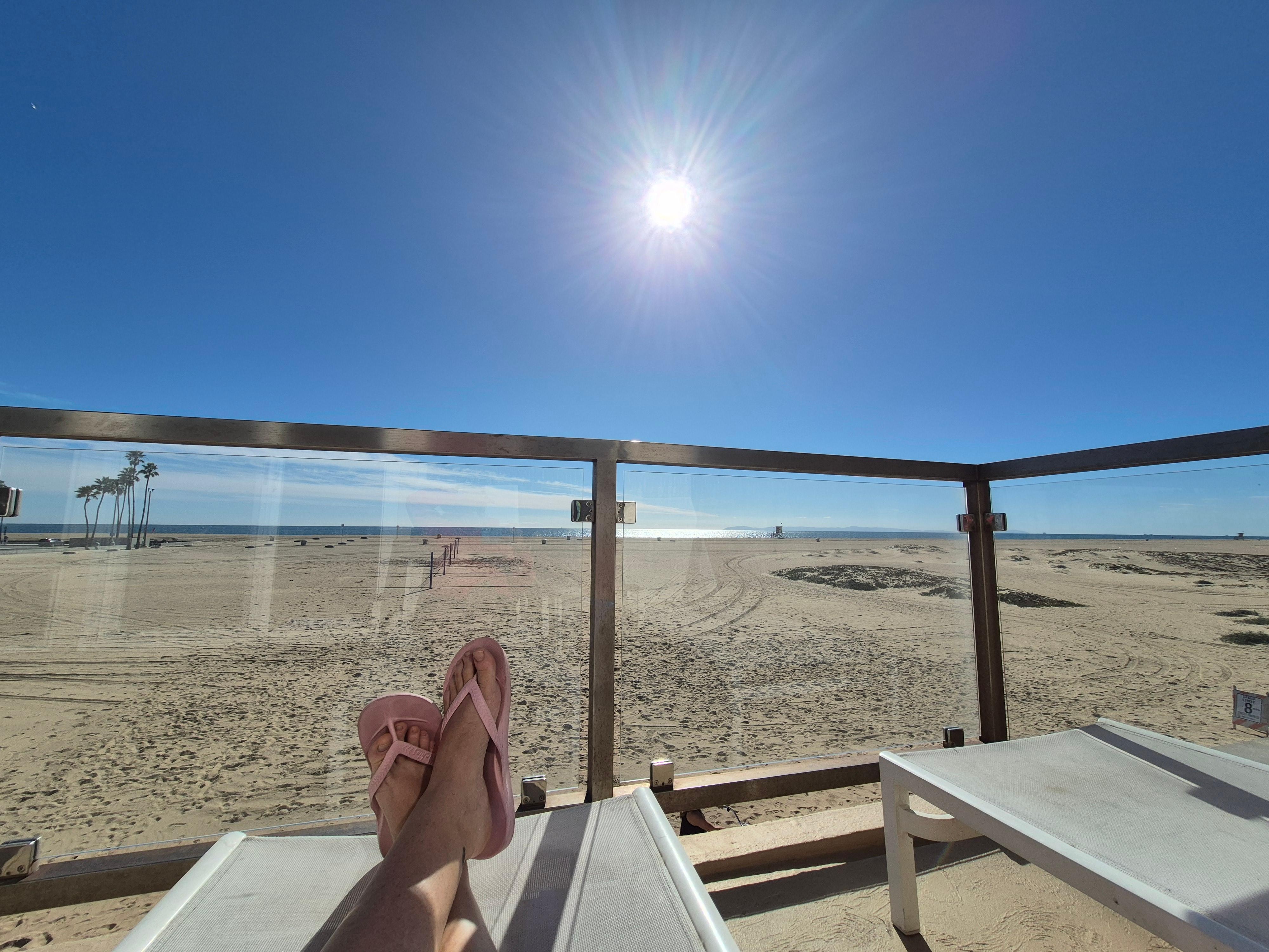 - Front patio with table and seating that overlooks the boardwalk and beach