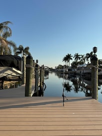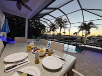Relájese en esta lujosa casa de vacaciones con acceso al Golfo ubicada a solo 5 minutos de la playa de Cape Coral en el área del Yacht Club. Esta casa de 4 dormitorios y 3 baños se construyó a medida en 2008 y se actualizó recientemente con una piscina climatizada y spa. El patio trasero ofrece una peque��a playa de coco y camina hacia un enorme muelle y terraza con una cabaña tiki con vista al canal Malaluka.