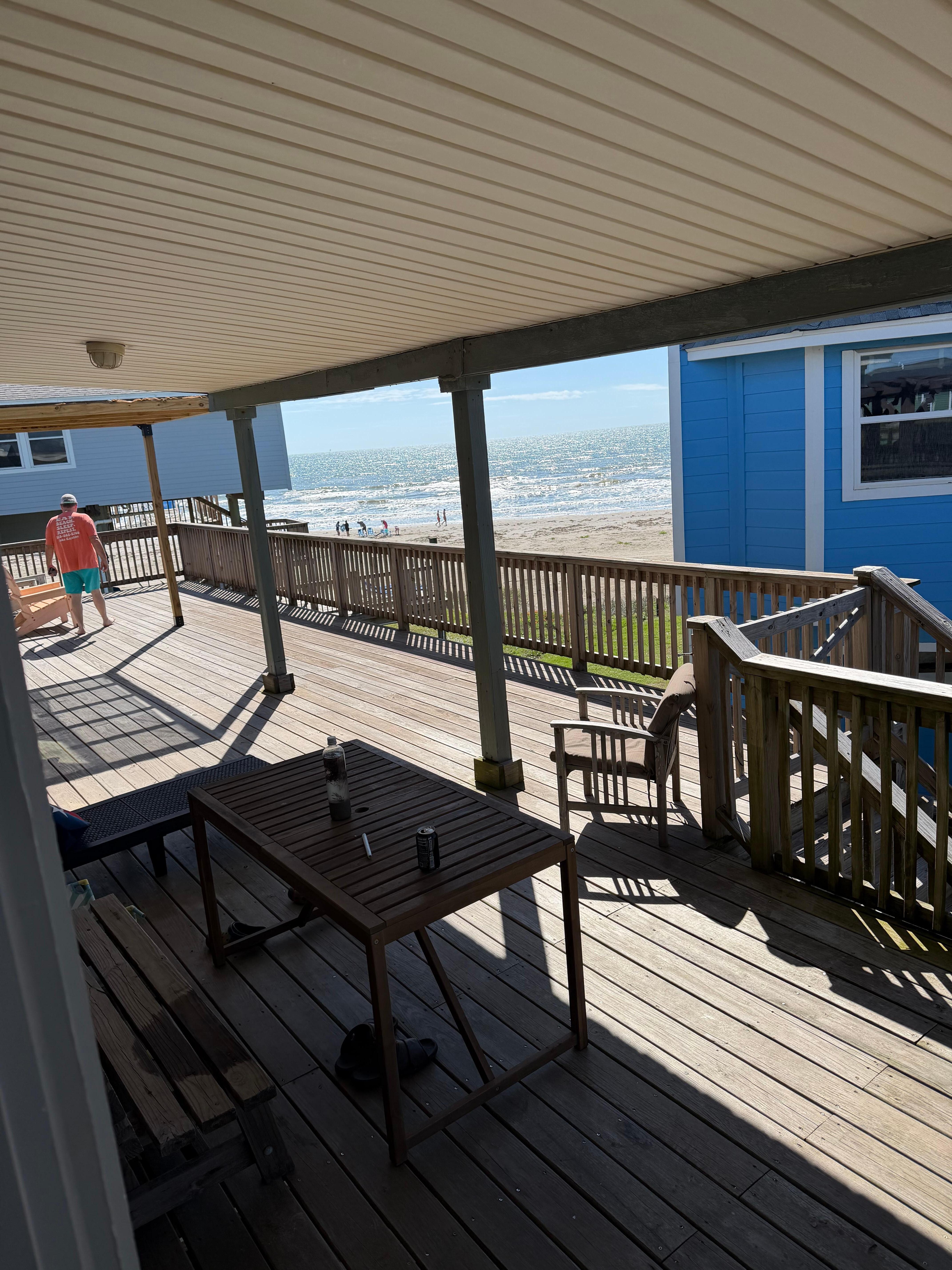 La casa está en un barrio tranquilo en el extremo oeste de la isla de Galveston en el lado de la playa. La amplia playa de arena es perfecta para que los niños jueguen en la playa, vuelen sus cometas o simplemente se diviertan en la arena y para que los adultos tomen largas caminatas por la playa.