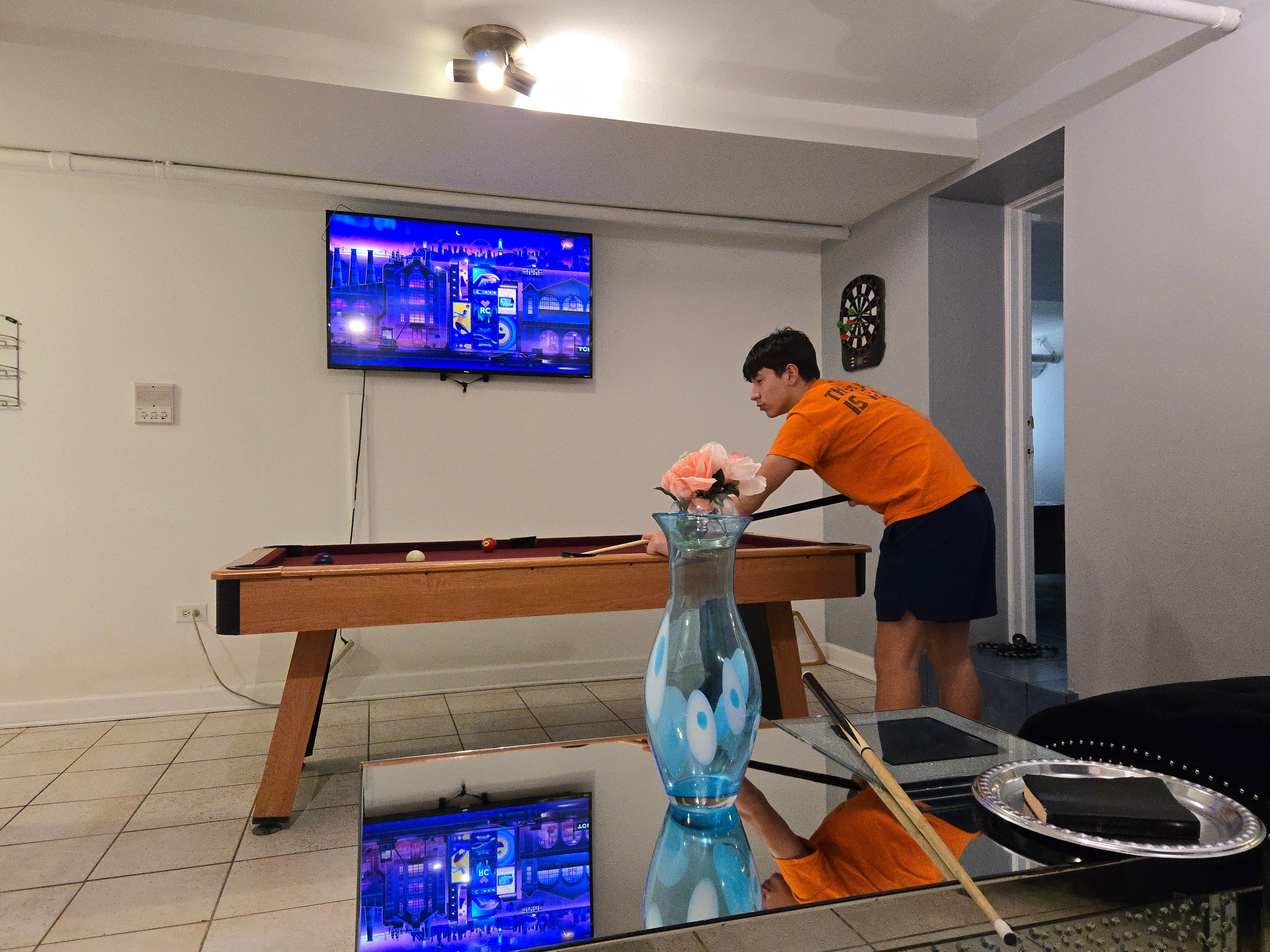The pool table and sleeping arrangements