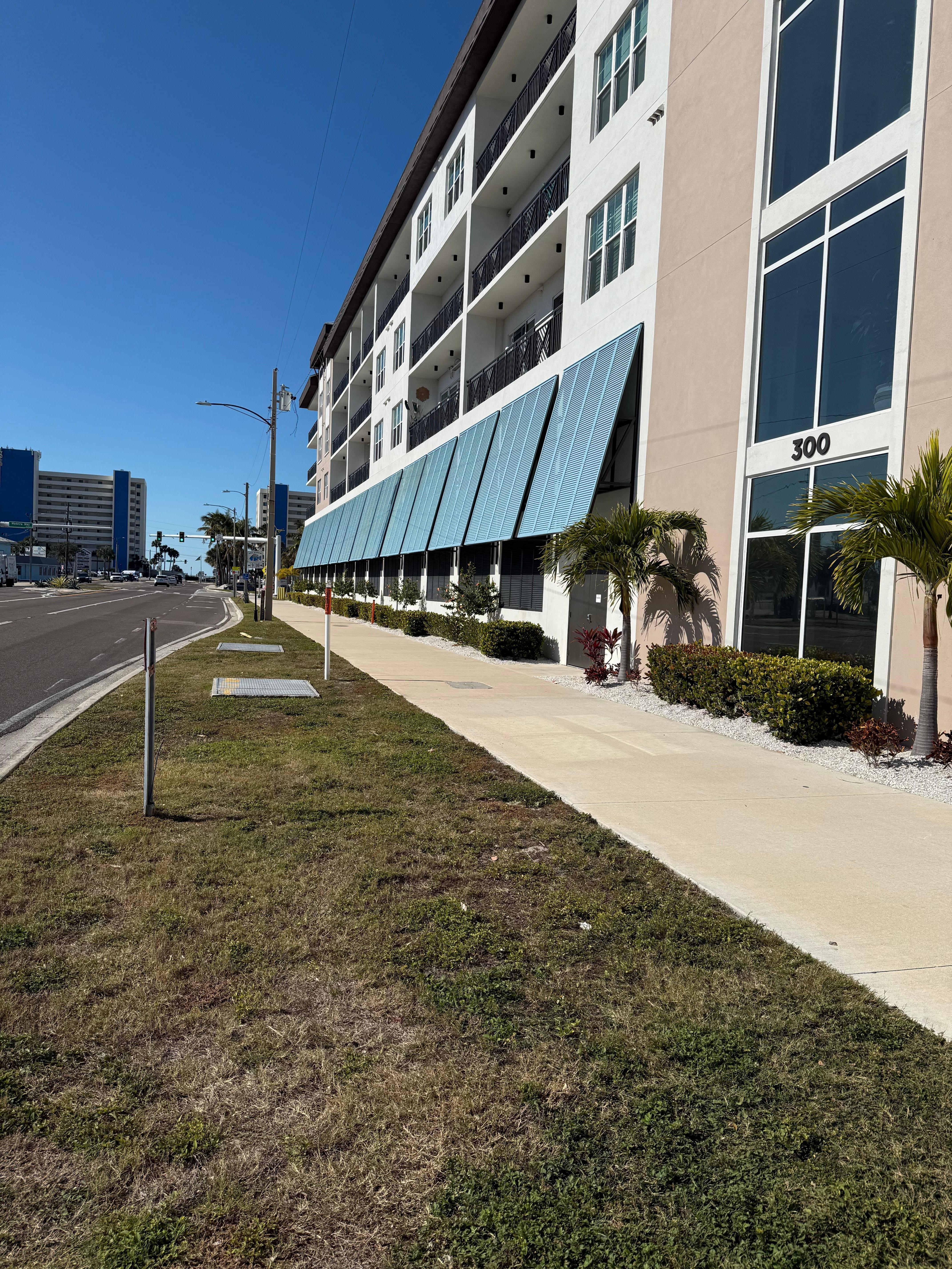 -Bus stops and Trolley on GULF BLVD. (Visit Suncoast Beach Trolley for more information).
