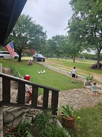 Disfrute de la belleza de una noche clara de Texas antes de acostarse y de una taza de café o té recién hecho en uno de los dos grandes porches, con mecedoras, mientras observa nuestros magníficos amaneceres y puestas de sol de Texas para relajar su cuerpo y alma. Mira a los caballos pastar, a las gallinas a la caza de insectos ... a veces tenemos venados y pavos salvajes que vienen a la casa. También tomar tiempo para sentarse en la piscina mientras disfruta de su bebida favorita, o disfrutar de la chimenea de leña en el interior!