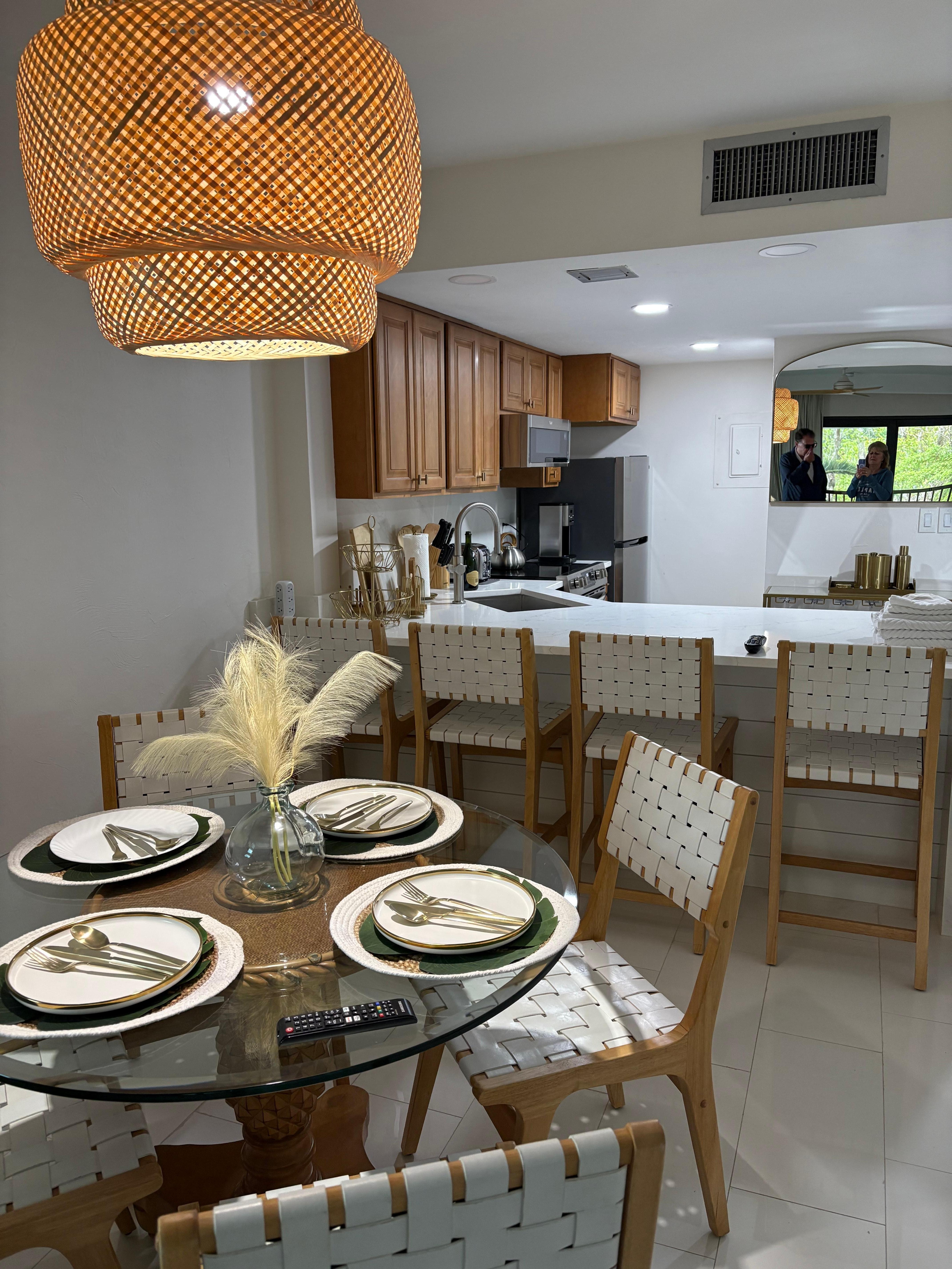 Esmeralda, thank you for your wonderful review. My guests and my property are most important to me. When selecting a property "location" is the first on the list. My property location is just perfectly situated in Naples with a 1/2 mile to the beach, shops and restaurants. The property is unique in that there is an excellent bar and restaurant on premises. I appreciate your comments concerning my completely renovated space with high end appliances and "modern features". Your review of the cleanliness was so helpful for potential guests, cleanliness is my upmost care. I would like to thank you for caring for my property as your own and establishing a good rapport. As such you have earned a discount on your next reservation. Please contact me directly Terrie
