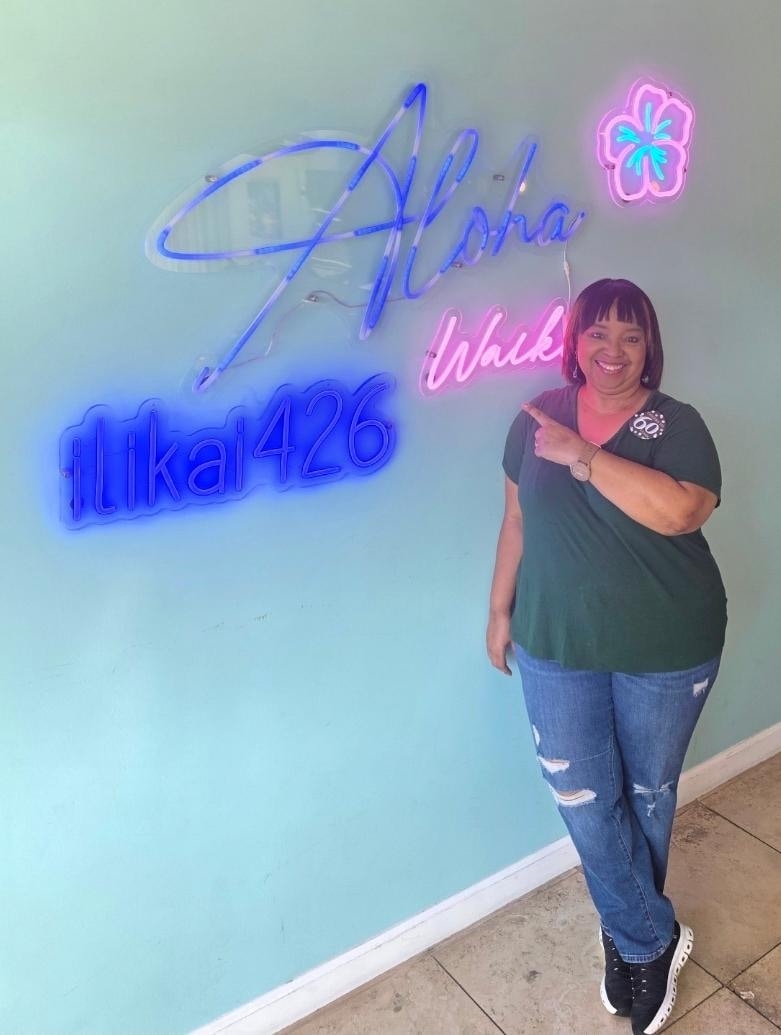 "Aloha" neon sign to take pictures for keepsakes, original and specific to this Ilikai condo 426