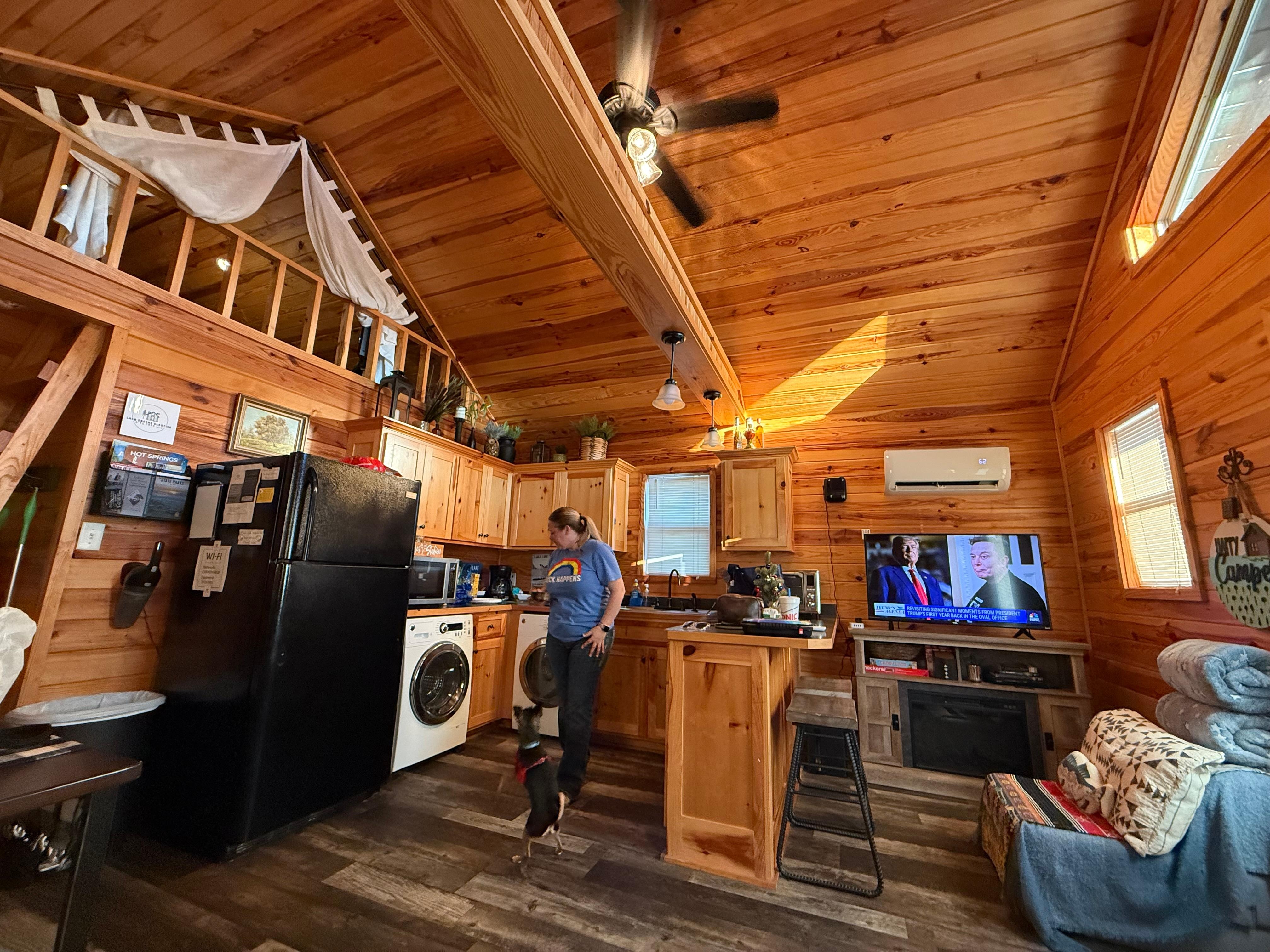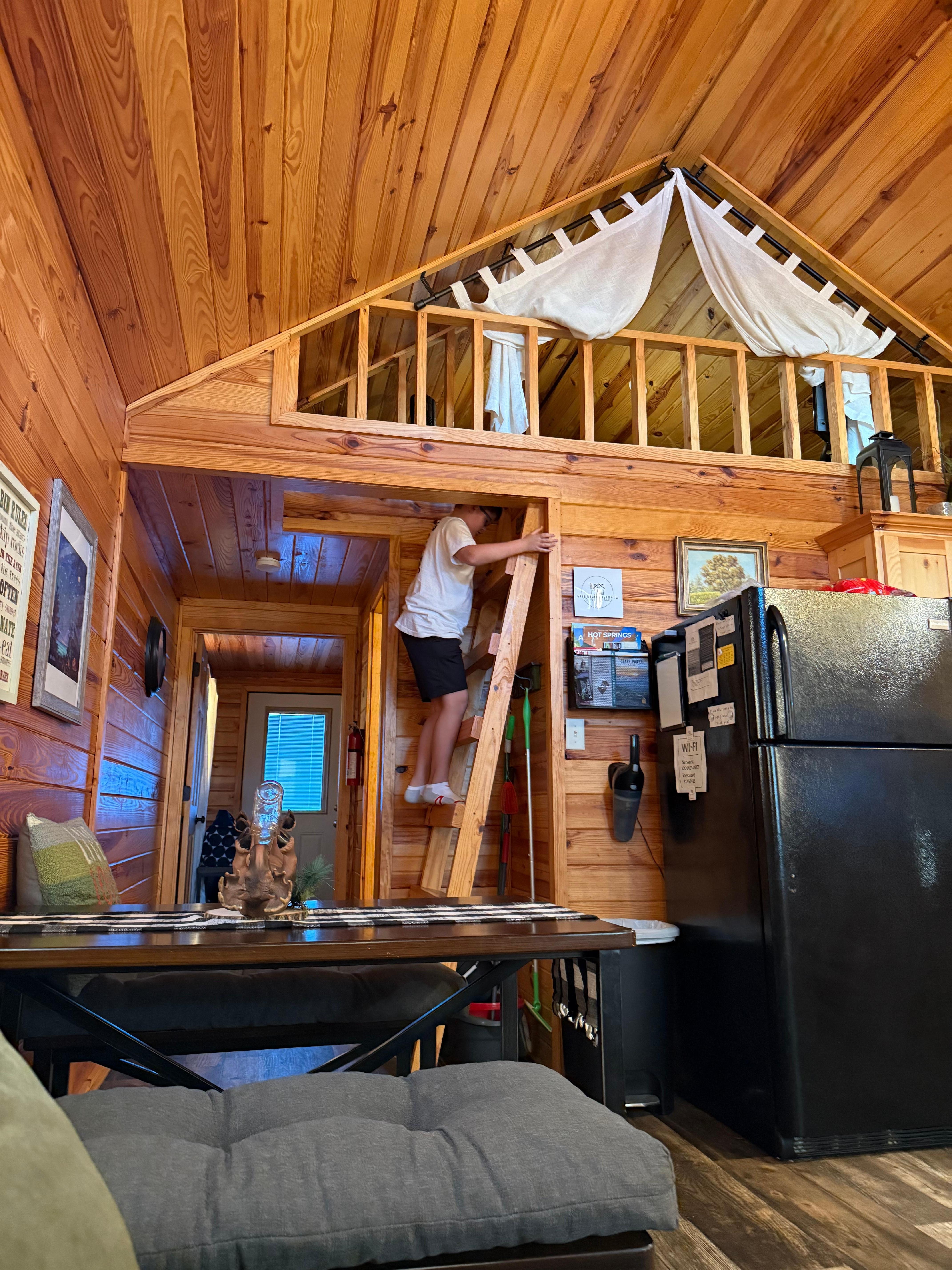 Take full advantage of DeGray Lake State Park and all of it’s amenities! We have three cabins available, all located right next to the state park. This listing is for cabin #1 - the first of the smaller cabins. It is a little over 500 sqft with 1 BR/Loft/1BA and open living area and kitchen. The bedroom and loft both have queen beds. There is also a full size futon and single foldout sleeper in the living area. Sleeps up to 6 altogether. Pet friendly!🐾 No pet fee!🐾 Fully fenced in backyard. Outdoor table and chair setup $10 per table. Yard and board game renals $25. Inquire about party setups!