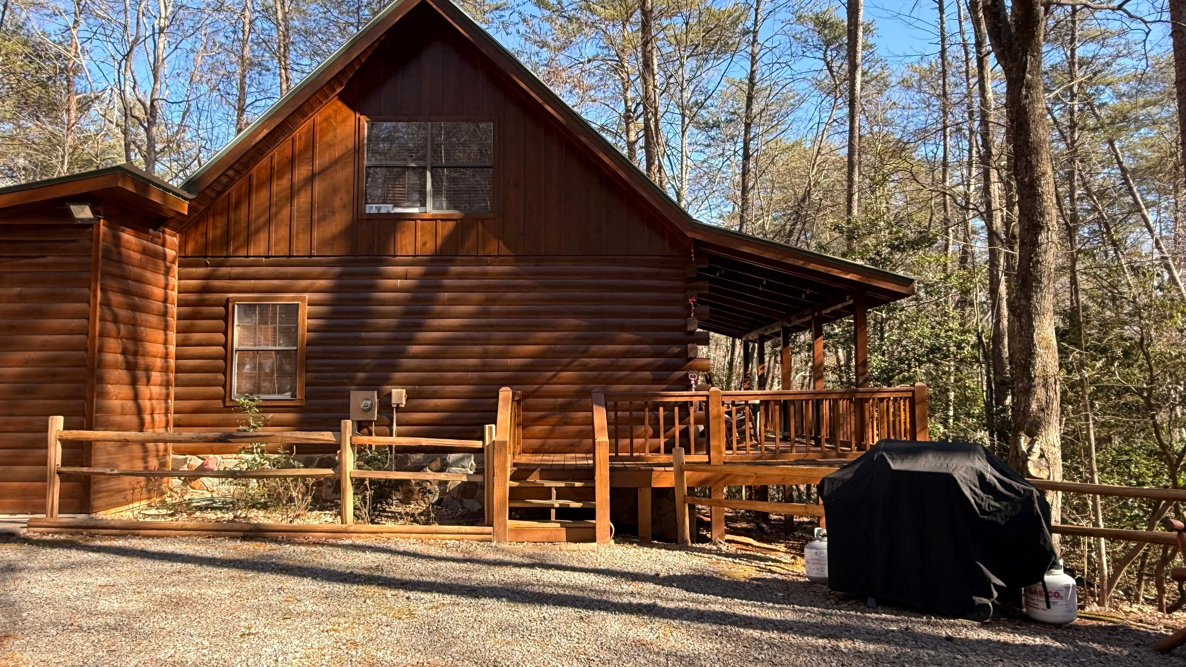 Escape to Snuggled Away, a cabin with the perfect blend of privacy and relaxation, located in the serene Blue Ridge Mountains. With two cozy bedrooms plus a loft bedroom, there's ample space for up to 6 guests. Step outside and unwind on the porch with a soak in the hot tub while enjoying the picturesque forest views. This cabin provides a peaceful retreat for those seeking tranquility and a break from the hustle and bustle of daily life. Downtown Blue Ridge and Ellijay are a short 15-20 minute drive. A 4WD vehicle may be necessary to go up the steep, gravel driveway. There is flat parking at the top.