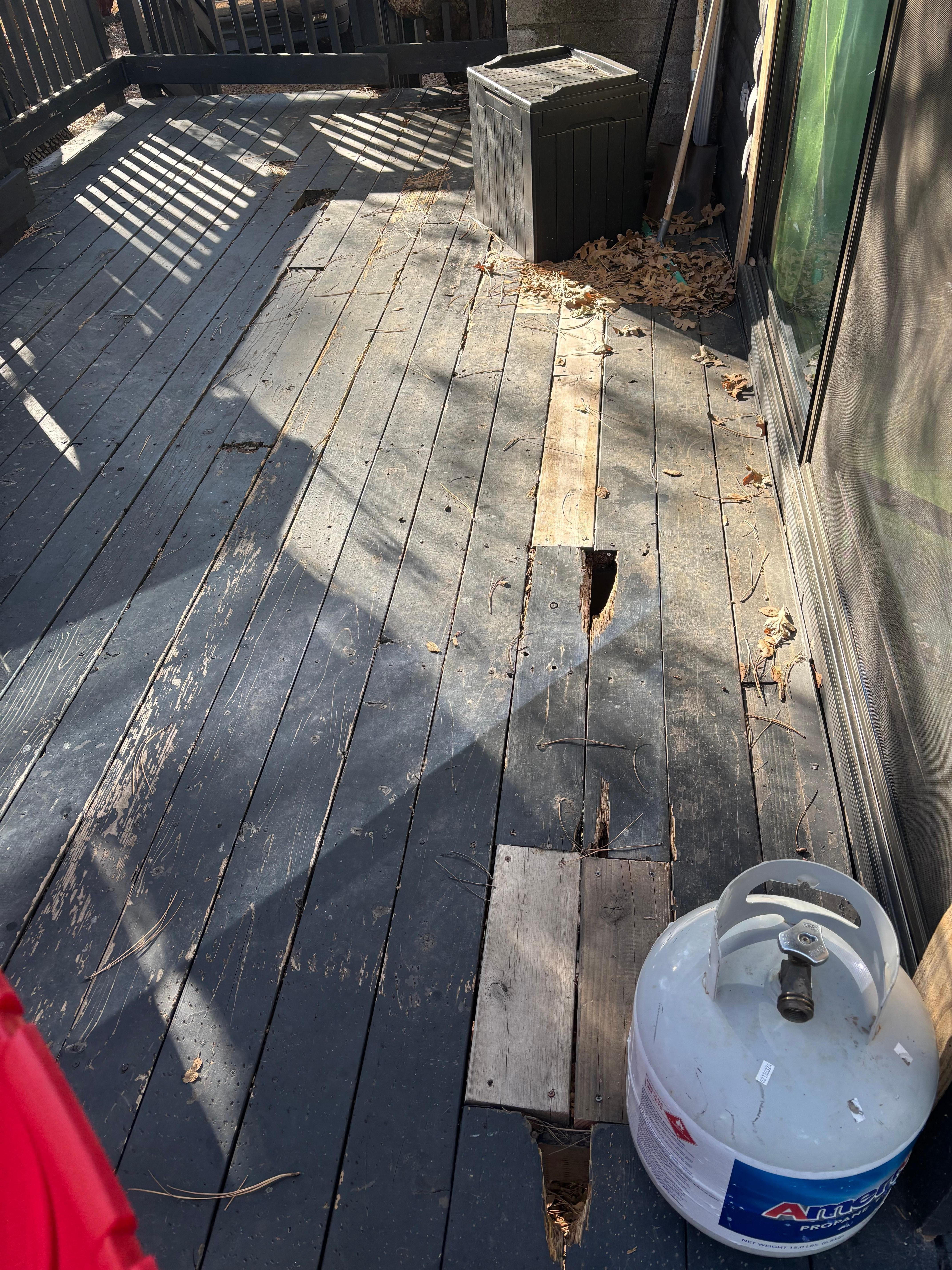 OUTSIDE: Wraparound back deck w/ outdoor dining table, gas grill and area, gas fire pit with sun chairs, views amongst the pine trees!