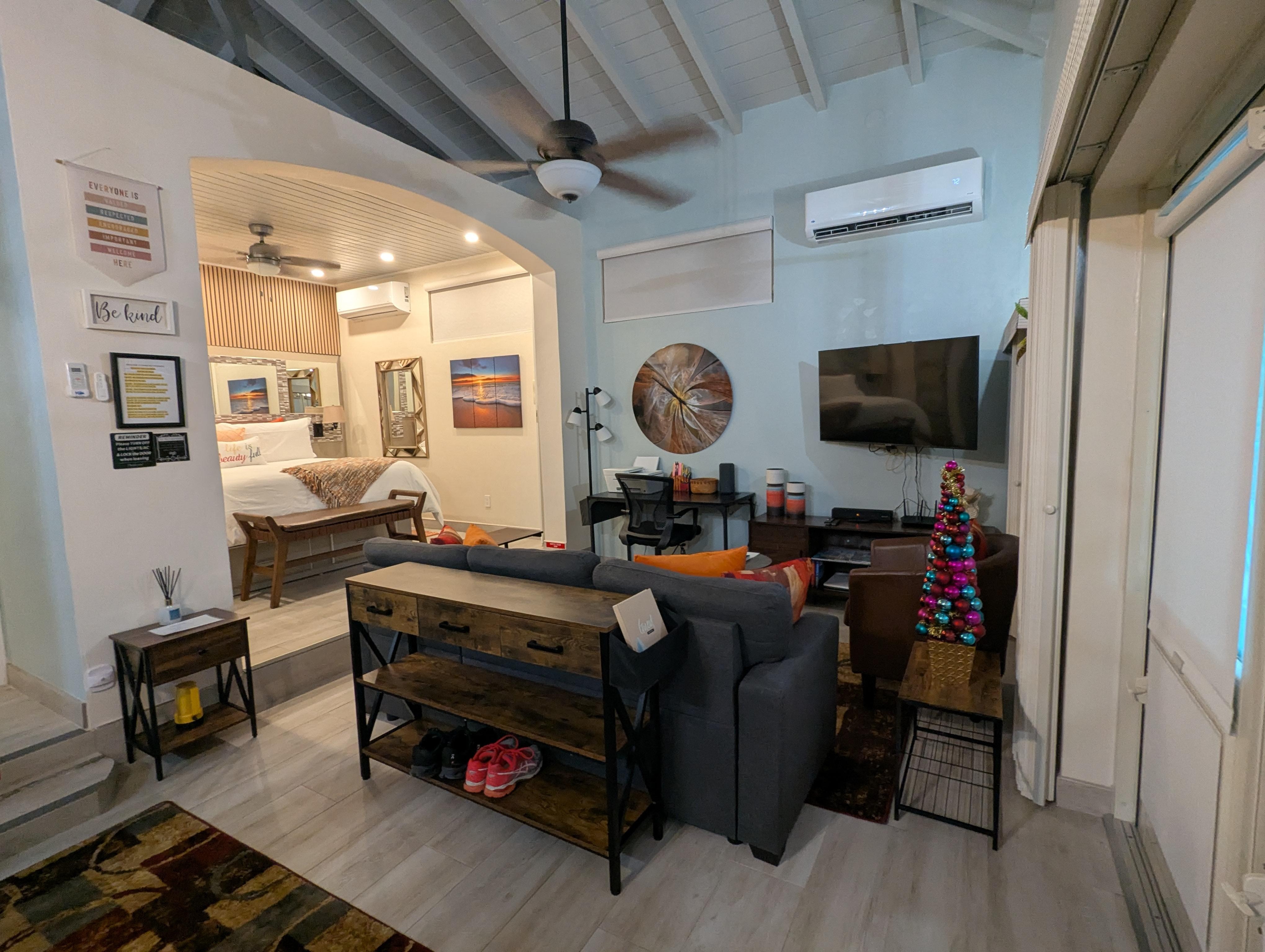 Grand Bay Hideaway Bungalow, situated in a Peaceful and Safe Gated Community is a True concierge experience with (Free Escort Service from your Car Rental location also Grocery Shopping is extended to first time Visitors If needed) Don't pass on this One-of-a-Kind Couple's Hideout with tons of extras!! ( Including 20KW Generator, Also provide Beach chairs and Towels. Grand Bay Hideaway is 7 Minutes drive to Magens Beach, located on the Peterborg Peninsula, Self Checking is not available, and would need temporary code to access when entering. As your Host,I will be On Site to Welcome and do walk through of the property to make sure you are settled in with Comfort.