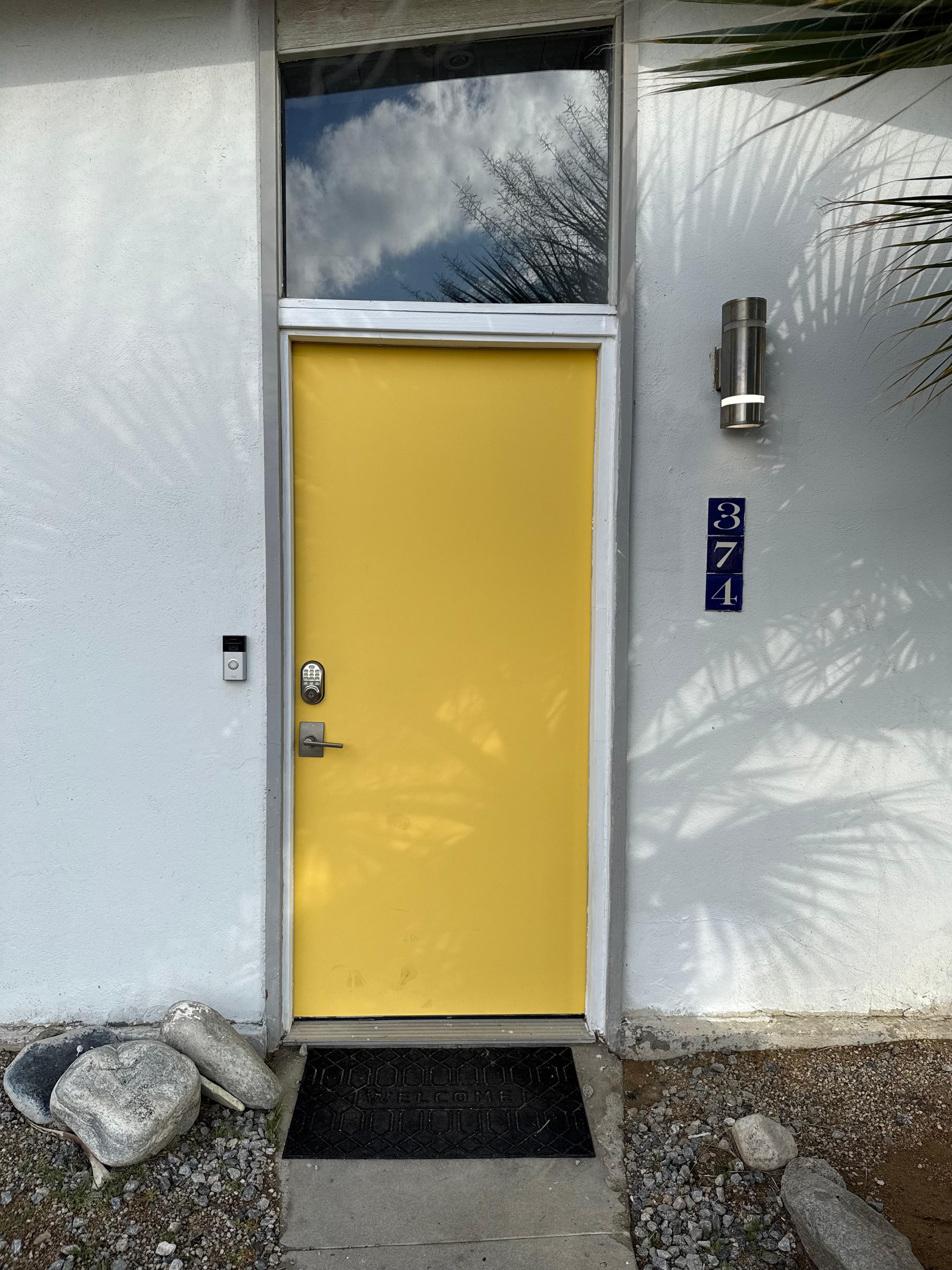 The flowing, open interior features a welcoming layout with stylish decor and iconic Palm Springs imagery. High-grade, stainless-steel appliances come equipped for gourmet meal inspiration, while the sleek, uncluttered design makes for seamless prep and cleanup. Grab a spot on one of the sofas to stream your favorite shows and movies on the smart TV, or kick back in the sitting area with a good book to enjoy some quiet reading. Master bedroom guests will enjoy private en-suite bathroom access and a dedicated desk in the bedroom for remote work convenience.