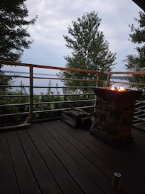 Secluded getaway with lakefront views of Lake Erling. Multi-seating outdoor spaces including a covered deck, rock garden, flagstone patio, and grilling area with sink/tabletop. Indoor views through large open windows in each room. Outdoor propane and wood-burning firepits. High-end kitchen appliances, granite countertops, and indoor wood-burning fireplace. Movie selection, reading materials, puzzles, and games are available. Washer/dryer access.