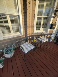 The backyard with a privacy fence is perfect for a family gathering. There is plenty of seating on the porch and additional seating in the yard. There is a small play set for the kids too!