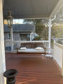 The charming wrap around porch has a swing and seating on the front, and additional seating on the side that wraps around to back yard with a privacy fence. You’ll love the inviting feeling of the porch when you’re hanging out in true southern style.