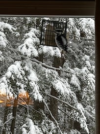 Our spacious, all season property is nestled in the heart of the White Mountains, located on a quiet, private road only 5 minutes from the highway. It is a perfect vacation spot with all the comforts of home for 1 or 2 families to enjoy. Please note that children are allowed but pets are not. Our property has recently been renovated with all new flooring , new lighting , new mattresses and bedding etc. The property has an open floor plan on the first floor with living room, kitchen and dining area. There are 4 bedrooms, 2 full baths, and a fully equipped kitchen. Please note that linens, including sheets and towels, are not included. All rooms have forest views. The house features exposed beam ceilings, new plank flooring throughout, new lighting, and 2 heating zones, one on each floor. In the winter, you can relax in the living room in front of our gas fireplace as you watch the snow falling from our picture windows. Our property has 2 Smart TV's with DVD's, and plenty of family games and books for kids. Summer is a great time to enjoy our large deck and the surrounding beauty of the forest while you prepare a meal on our gas grill. There is a large grassy play area and a driveway for 4 cars. A washer and dryer adds to the convenience of our property.