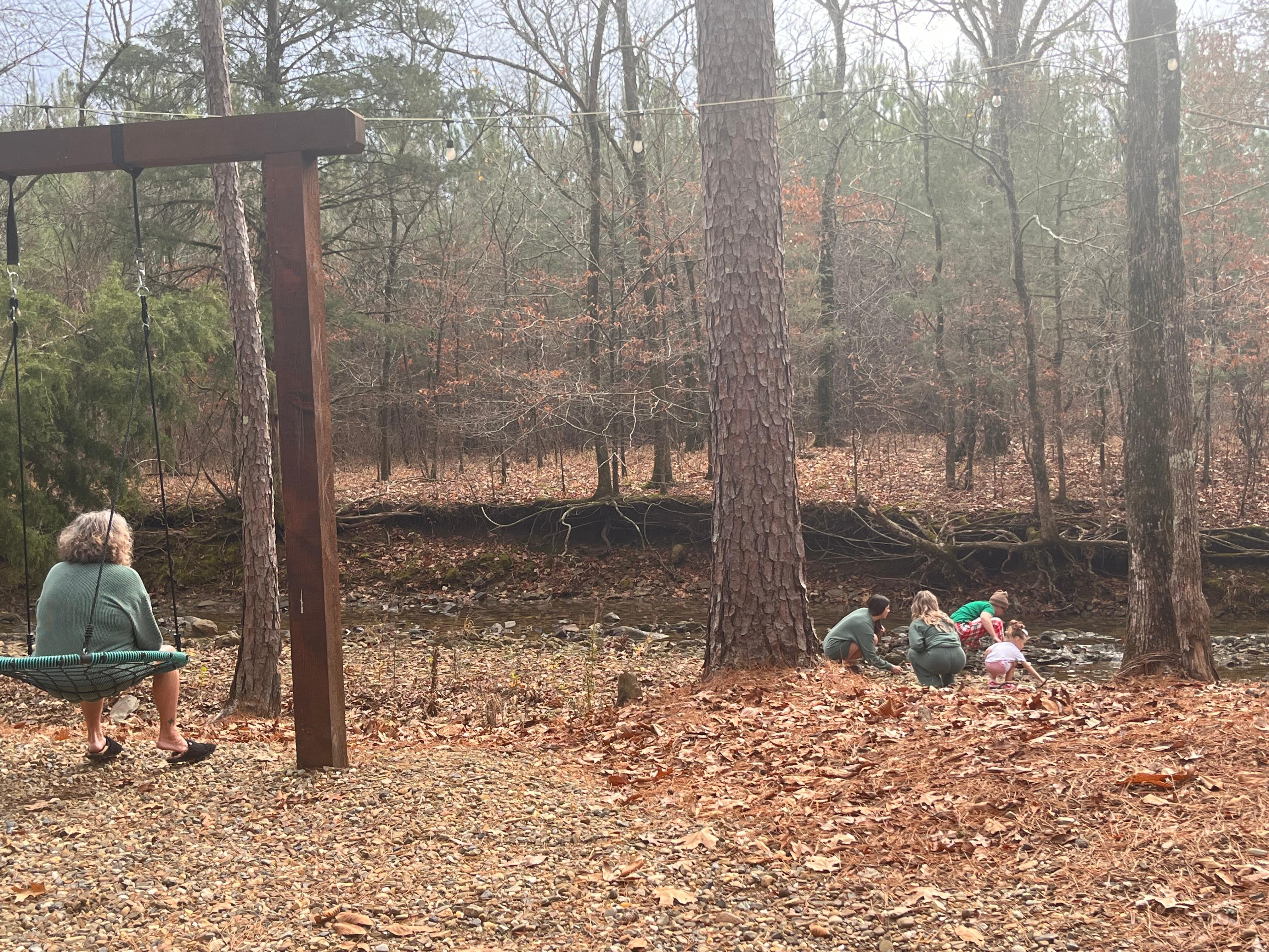 This was by far the most beautiful house and property I have stayed at to date. I wanted to live here. The interior was beautiful with 4 master bedrooms and since we had 4 couples, it did not leave anyone wanting for more. Also, we had 11 kids who had a great time all bunking together in the kids lift. The back deck was spectacular. This was where i spent most of my time. There was an inner area with TV and grill, and chairs, and outer deck with ping pong, cornhole, swings, tables for outdoor dining, and a large hot tub. The swings on the creek side was my favorite peaceful spot. I could have stayed there all day. The kids had fun finding lizards, salamanders, and crawdads in and near the creek, and there was also horseshoes to play. I am sure the family and i will be back as i think about this place alot!! Thank you for having us. One note on items you might want to bring that were not there: cooking spray, 9x13 pan, coffee filters, foil, saran wrap, ziplock bags, kleenex, dish scrubber. There is also limitations on toilet paper so smart to bring some extra.