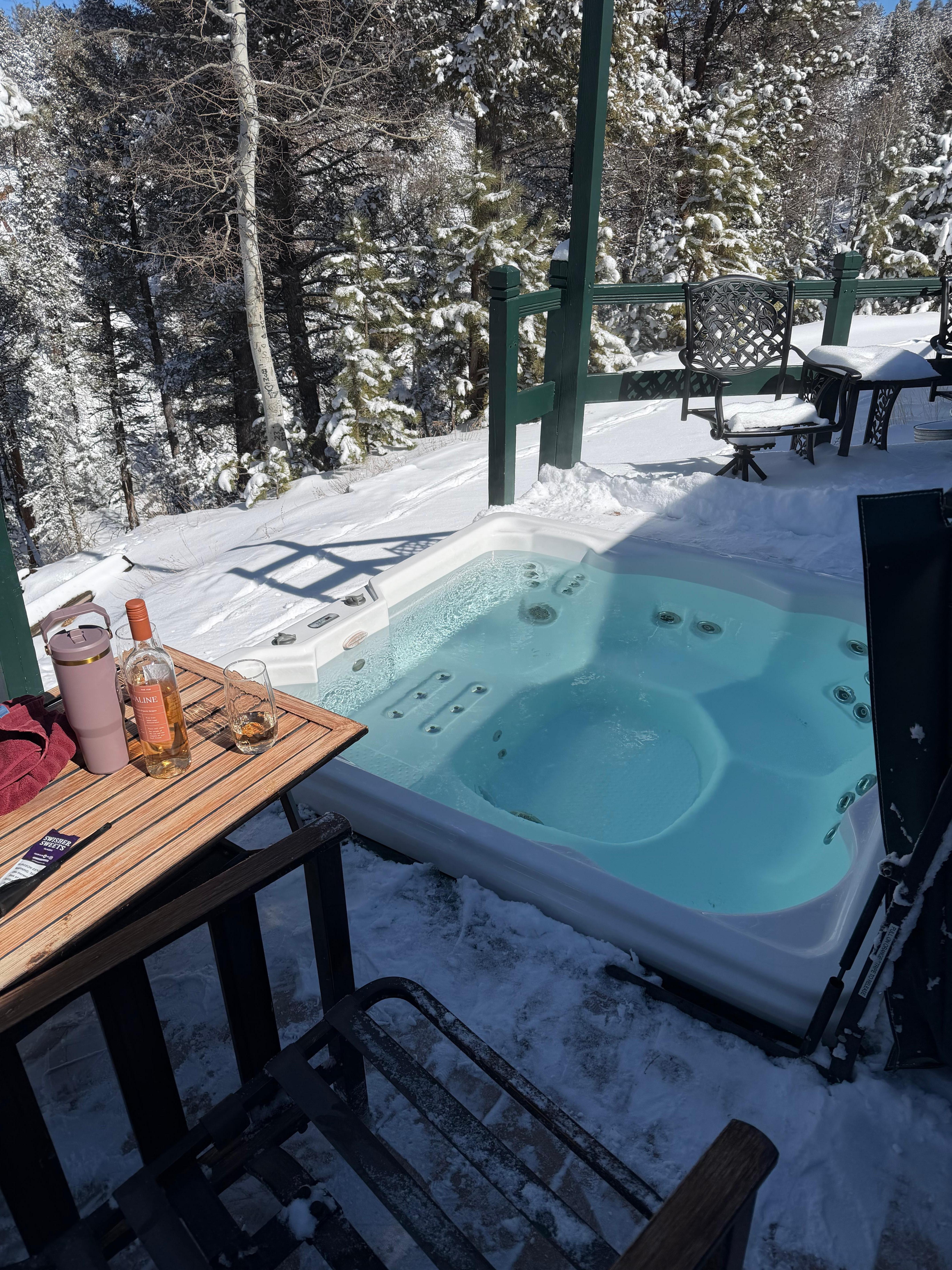 ¡Ven y respira el aire de la montaña! : Siéntese y observe la vida silvestre mientras se recuesta en el sofá mecedor. Relájese y tome una siesta frente a las pintorescas ventanas mientras disfruta del calor de la chimenea. Juegue un juego amistoso con un ser querido, o pierda en un buen libro al lado de la estufa de leña mientras disfruta de la silla de masaje. Siéntete como si estuvieras solo en la cima del mundo mientras te sumerges en el jacuzzi. La decisión es toda tuya.
