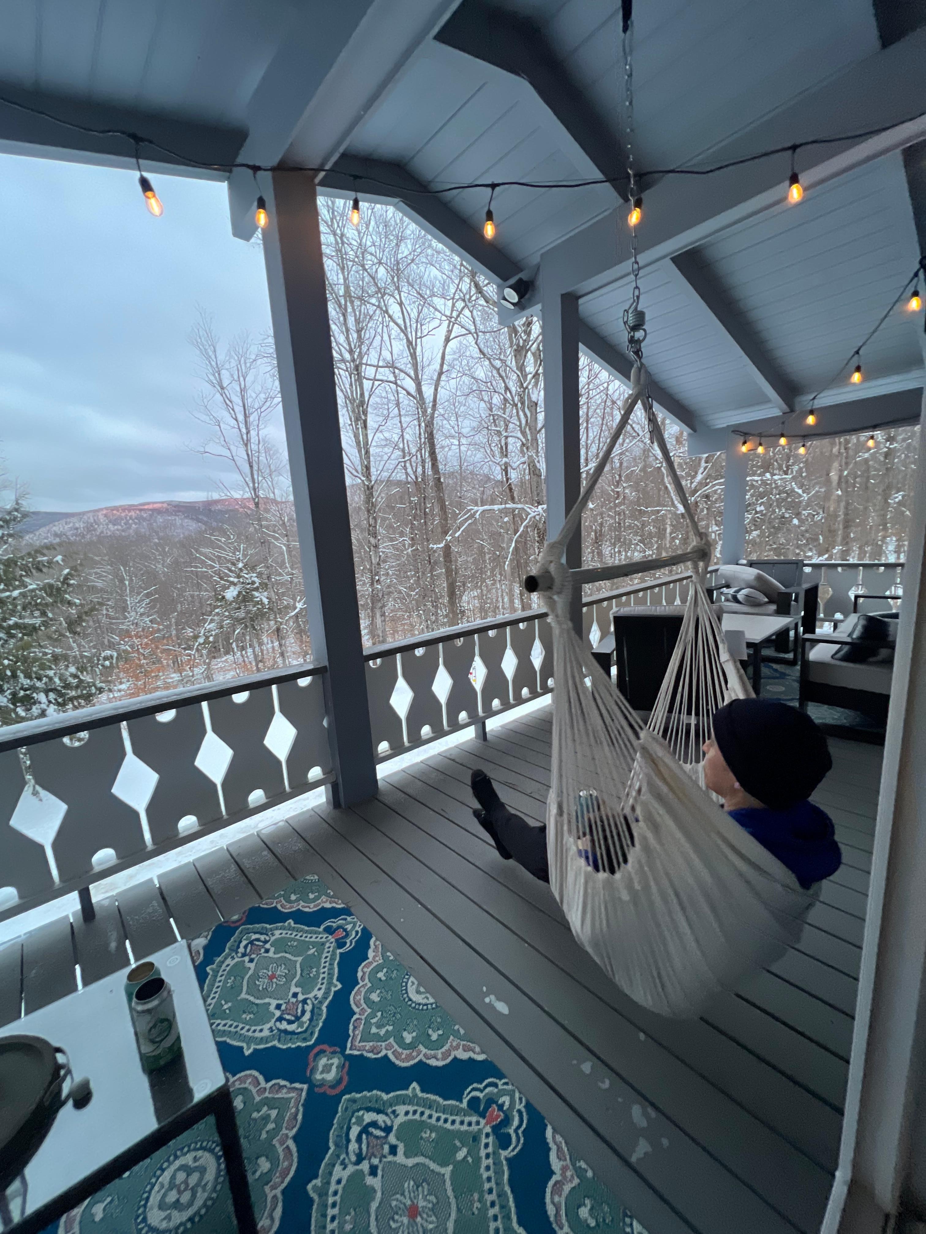 Step outside onto the large, covered, 2nd floor porch with seating, hammock chair, and peaceful, treetop mountain views. At night, view the stars and, if you're lucky, maybe even catch the aurora!