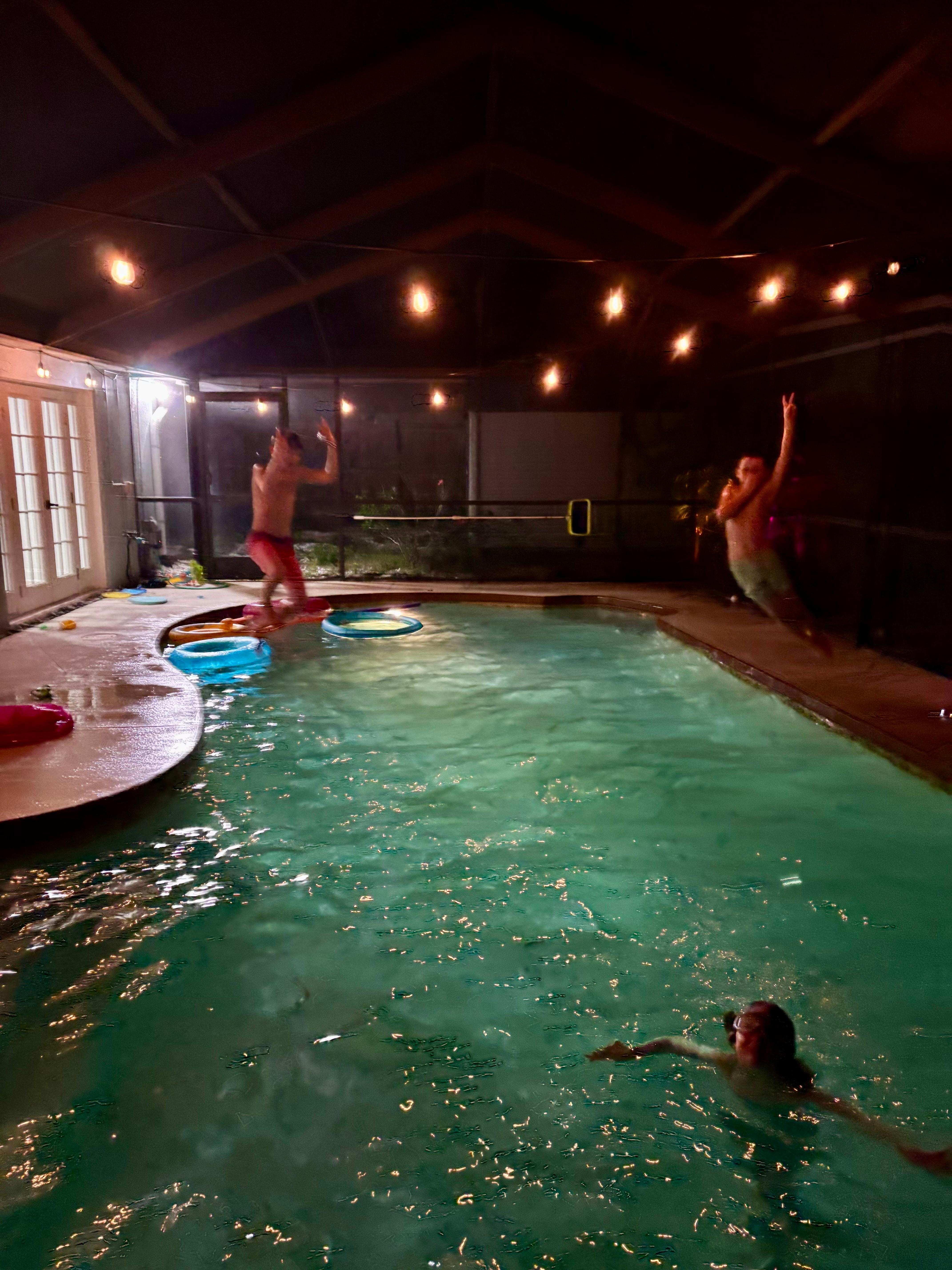 NOTE: The pool is heated at no additional cost. The temperature is set to a comfortable ≈ 80°F (warm enough to swim in, but cool enough to be refreshing). It is the ideal temperature for the salt chlorine system to be effective against algae buildup. Guests are not permitted to tamper with the pool equipment. We cannot guarantee the pool will reach the stated heated temperatures (especially if we have several rare cold days in a row).