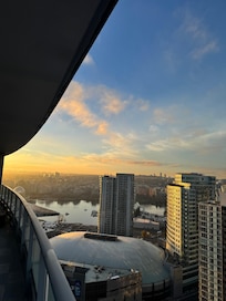From the rooftop patio, the lower balcony, or even the living room and kitchen ...watch the sea planes take off on Burrard Inlet (Vancouver's Harbour), look down on Rogers Arena and BC Place Stadiums, or have a look at the other Vancouver landmarks including: Science World, The Sun Building, Harbour Centre, False Creek, the mountains, or even pick out your room on the cruise ship docked at Canada Place, which you'll be see clear as day from one of two outdoor balconies.