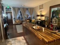 This charming apartment has all the usual amenities plus a few that harken back to some of its past reincarnations. Holdovers include a letter press, a life-sized carousel horse, a metal peacock sculpture, and a golden mirror (that is 8 feet tall and 4-1/2 feet wide). A quirky mix of industrial and glam elements create a moody welcoming environment.